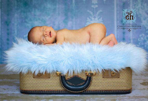 Long and luxurious! This beautiful baby blue mongolian fur nest is nice and thick (the nap is 2-3 inches high) and is the perfect touch for your newborn baby photography session!