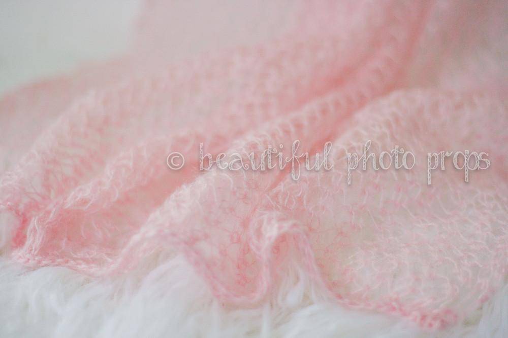 Create stunning newborn portraits with this premium baby pink mohair knit wrap. Hand-crafted from ultra-soft mohair yarn, this wrap delivers the dreamy, ethereal texture that newborn photographers love.