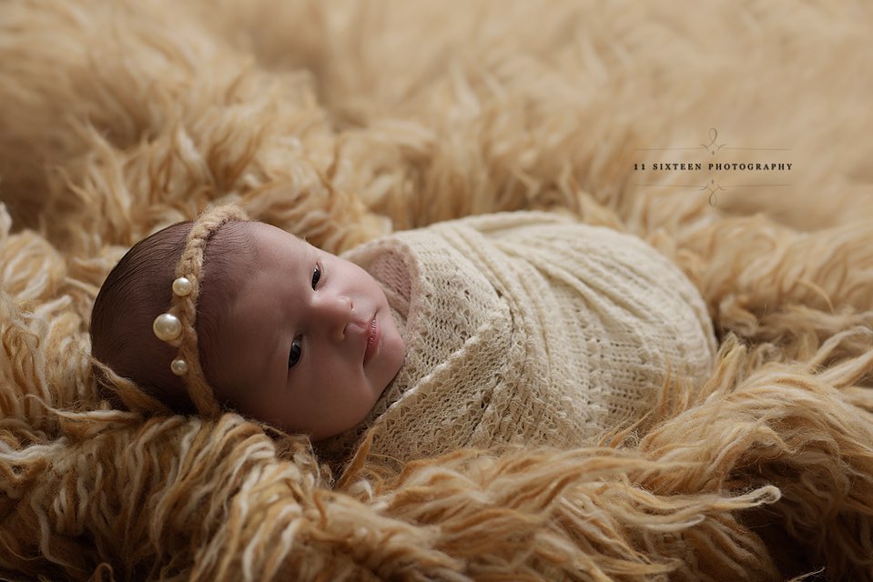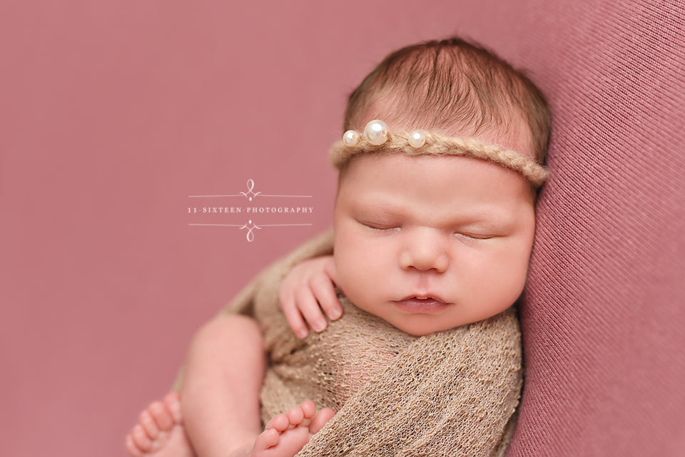 Made of soft mohair yarn and tiny matching pearls, this newborn headband is the perfect piece for your baby's first photos! Fits Newborn to 6 months.