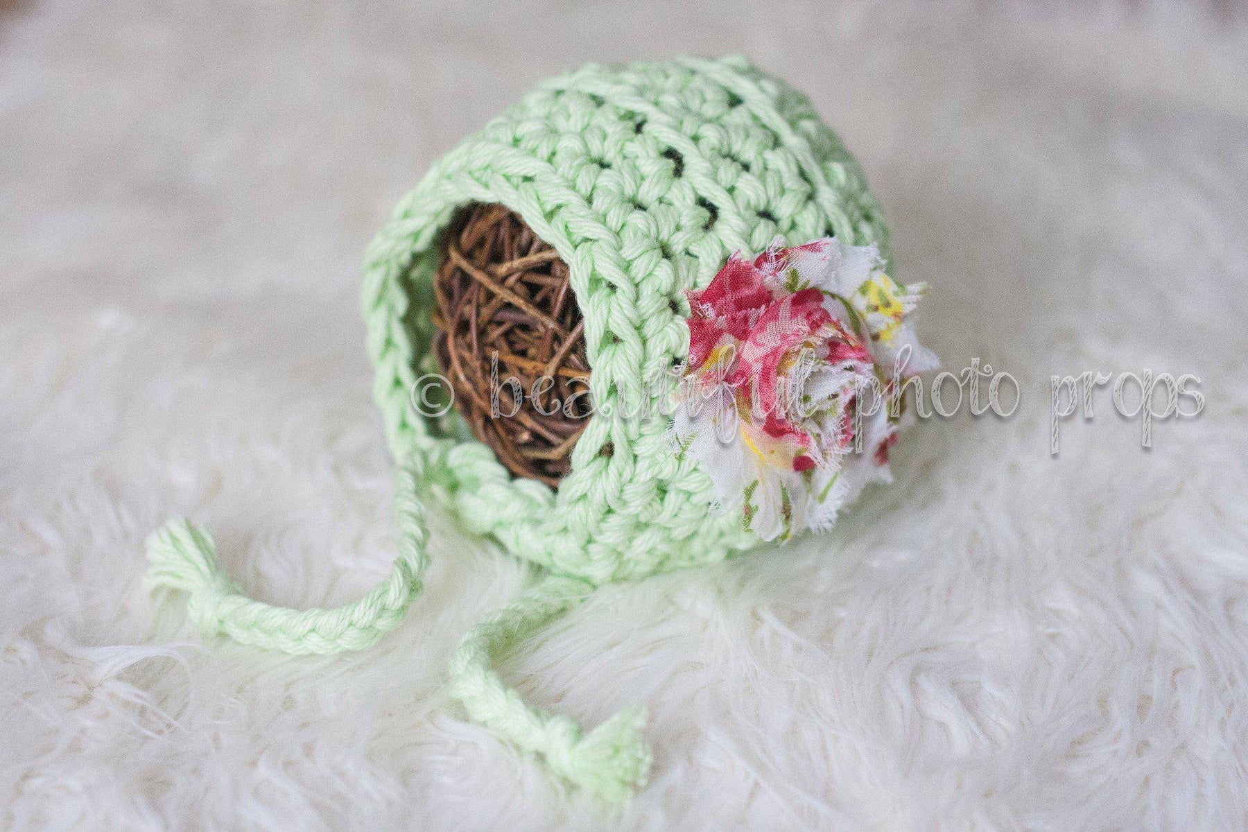 Blossom Newborn Bonnet Hat in Mint Green
