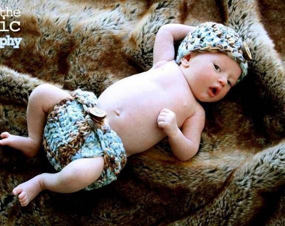The beanie is crocheted in the round and measures 12-13 inches with plenty of stretch. Your sweet little one will feel so warm and comfy wearing this thick hat and this makes the perfect beanie for professional photo shoots. The matching diaper cover keeps your little one's diaper nice and hidden :)