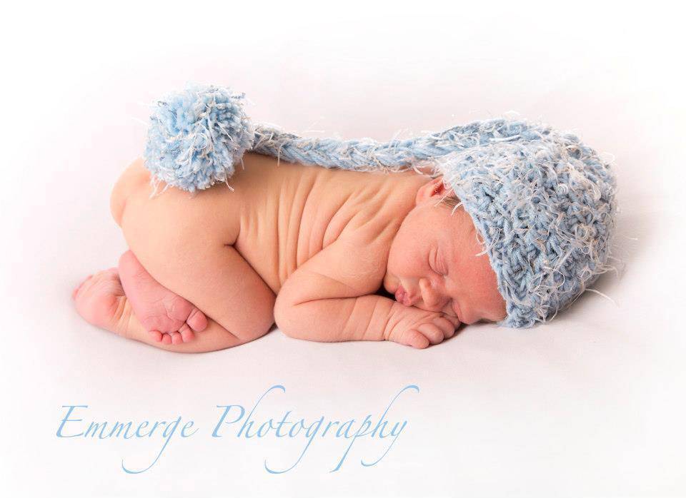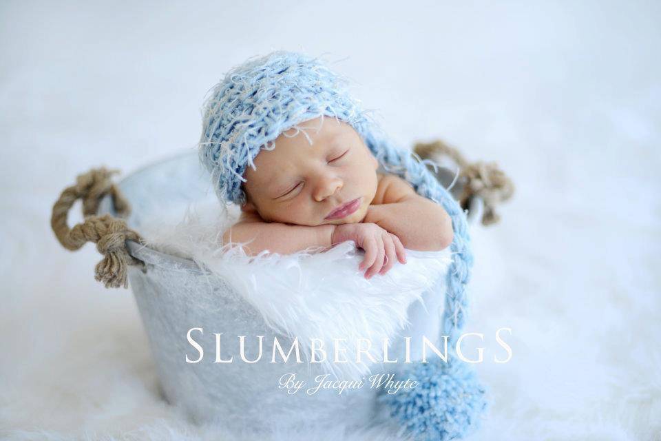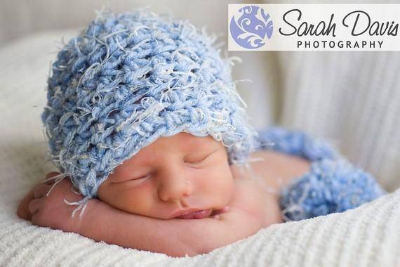 This adorable pixie elf hat in shades of blues and white is the perfect hat for those newborn photos!