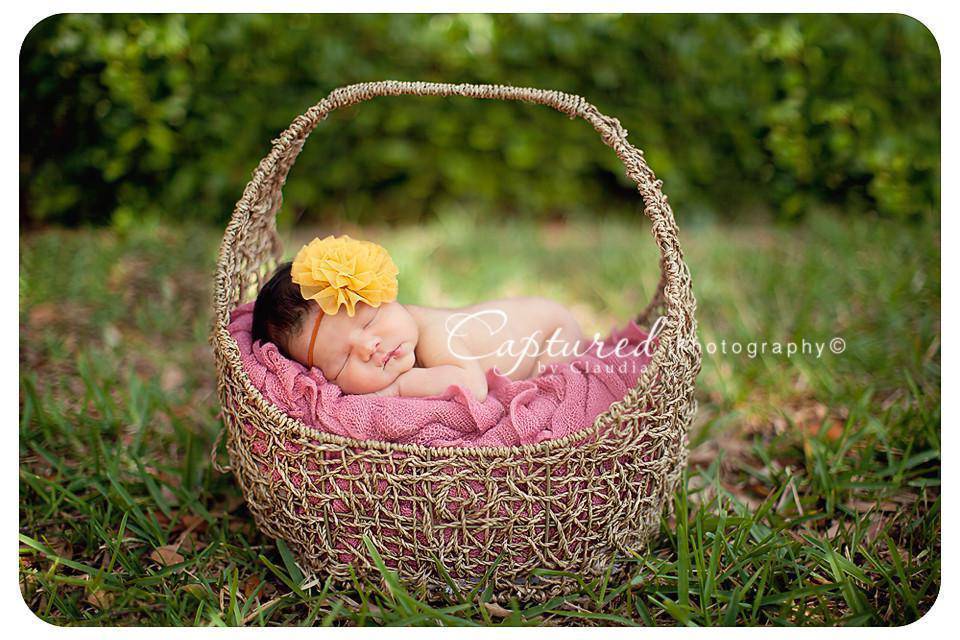 Beautiful blue tulle rosette flower on a skinny elastic band (second photo shows what this type of headband looks like on a newborn).