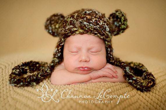 This cute little brown crochet earflap teddy bear hat is the perfect hat for those newborn photos!