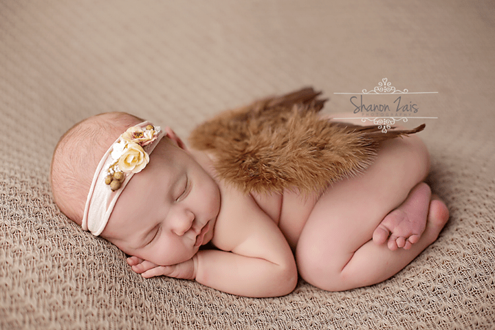 Our angel wings are perfect for infant and newborn photo sessions! They are also great used as costumes. Made of soft brown feathers, they measure around 7.5 inches x 6 inches.