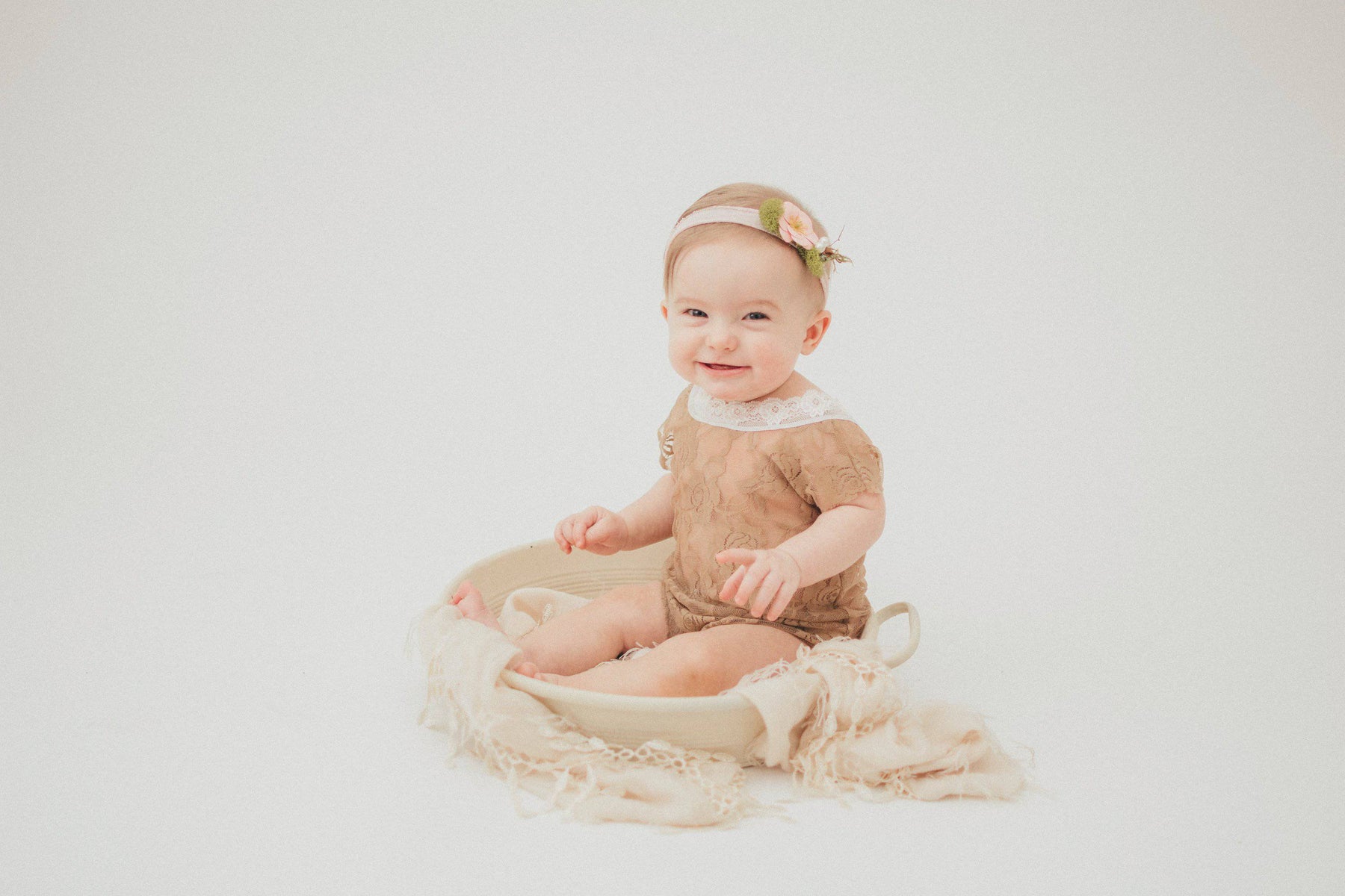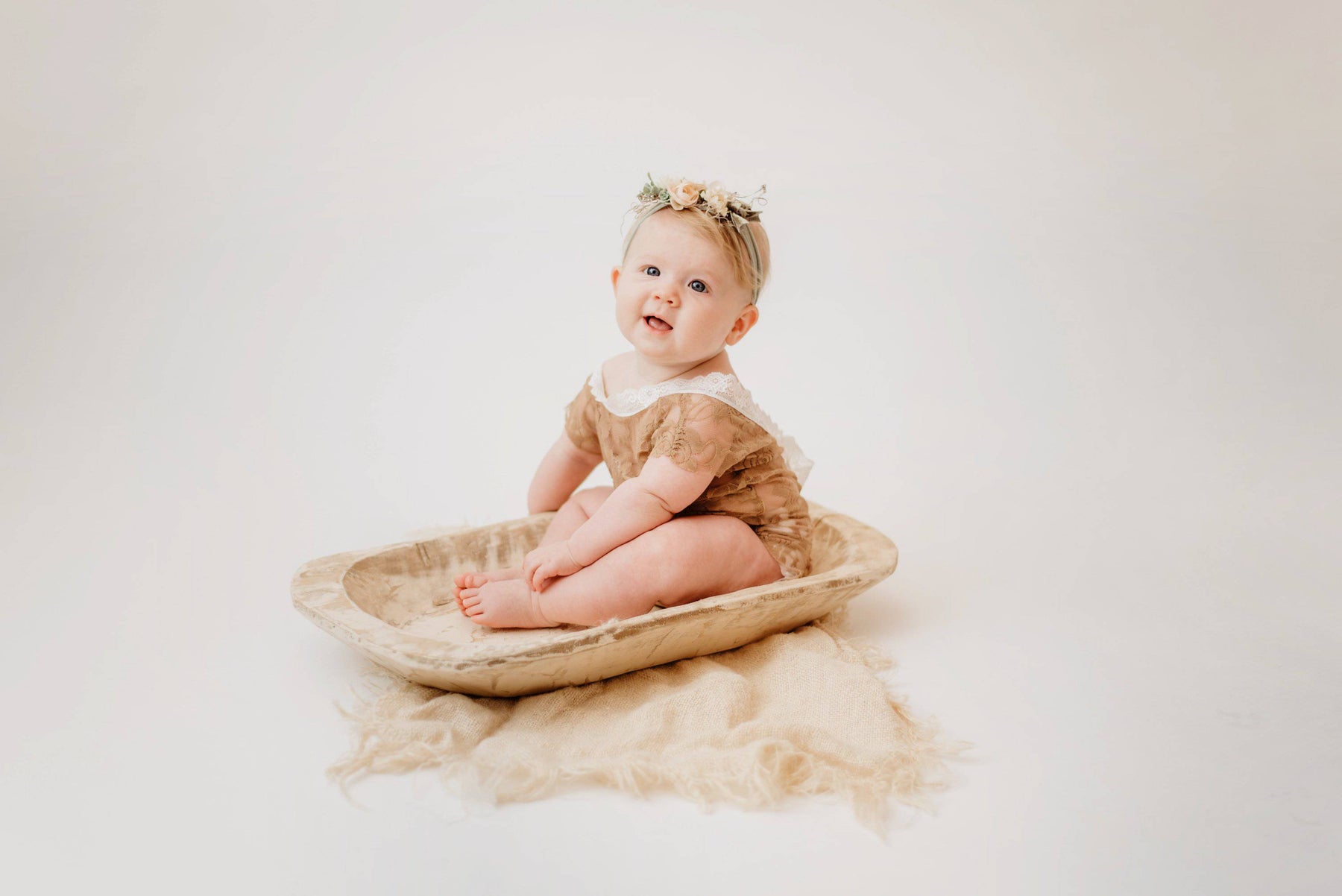 Brown Lace V-Back Newborn Romper with Ties