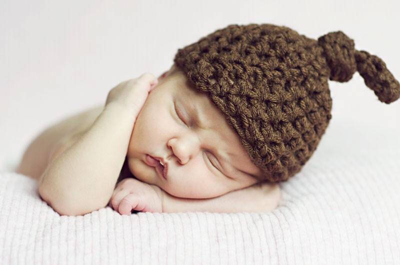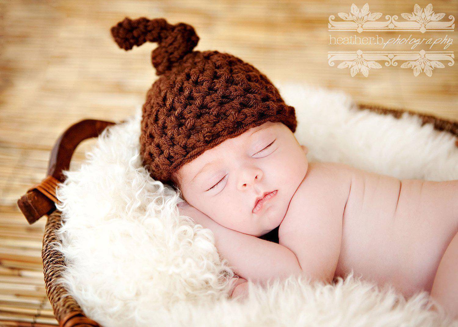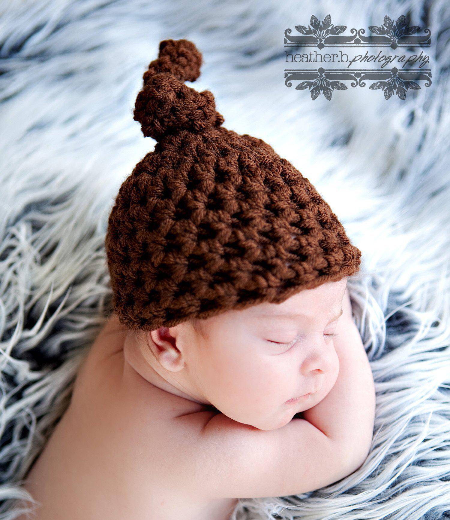 This gorgeous brown newborn knot beanie hat is made from a super soft acrylic yarn. It is the perfect fit to keep your little ones' noggin' nice and warm.