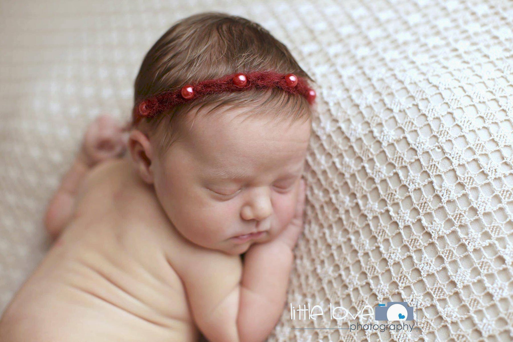 Made of soft mohair yarn and matching pearls, this newborn headband is the perfect piece for your baby's first photos! Fits Newborn to 6 months.