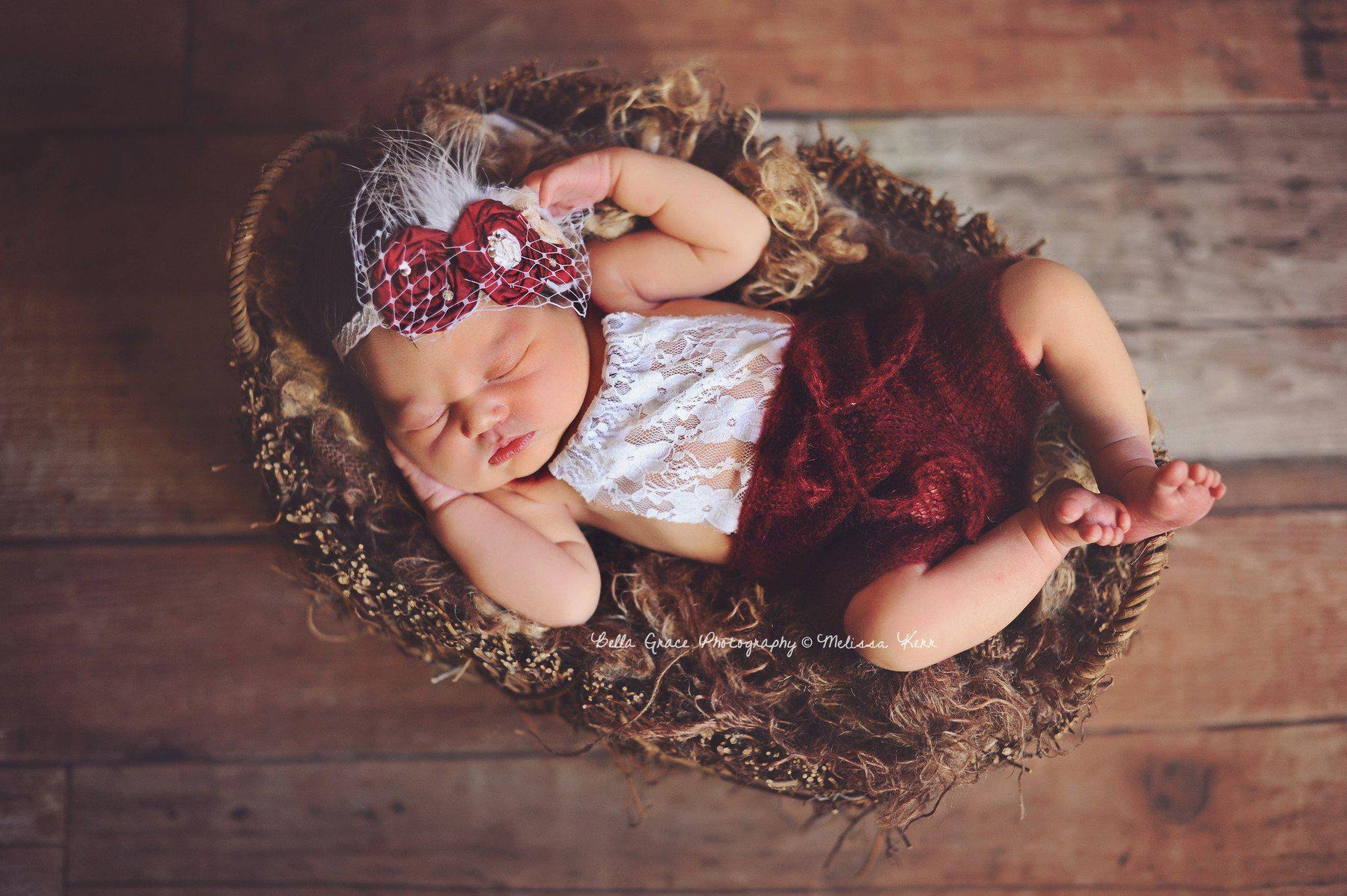 Burgundy Red Lace Front Mohair Knit Newborn Romper - Beautiful Photo Props