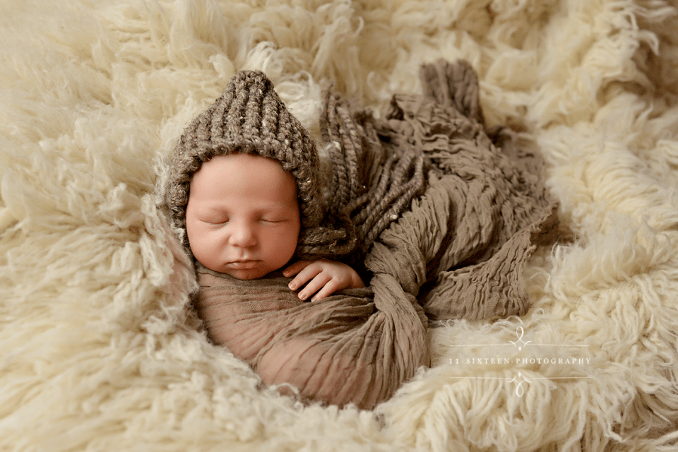 This adorable knit bonnet (shown in Barley) is the perfect hat for your sweet little newborn baby photos!
