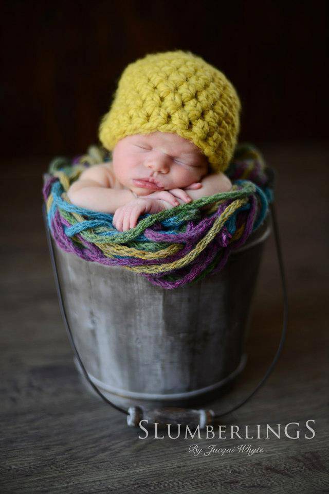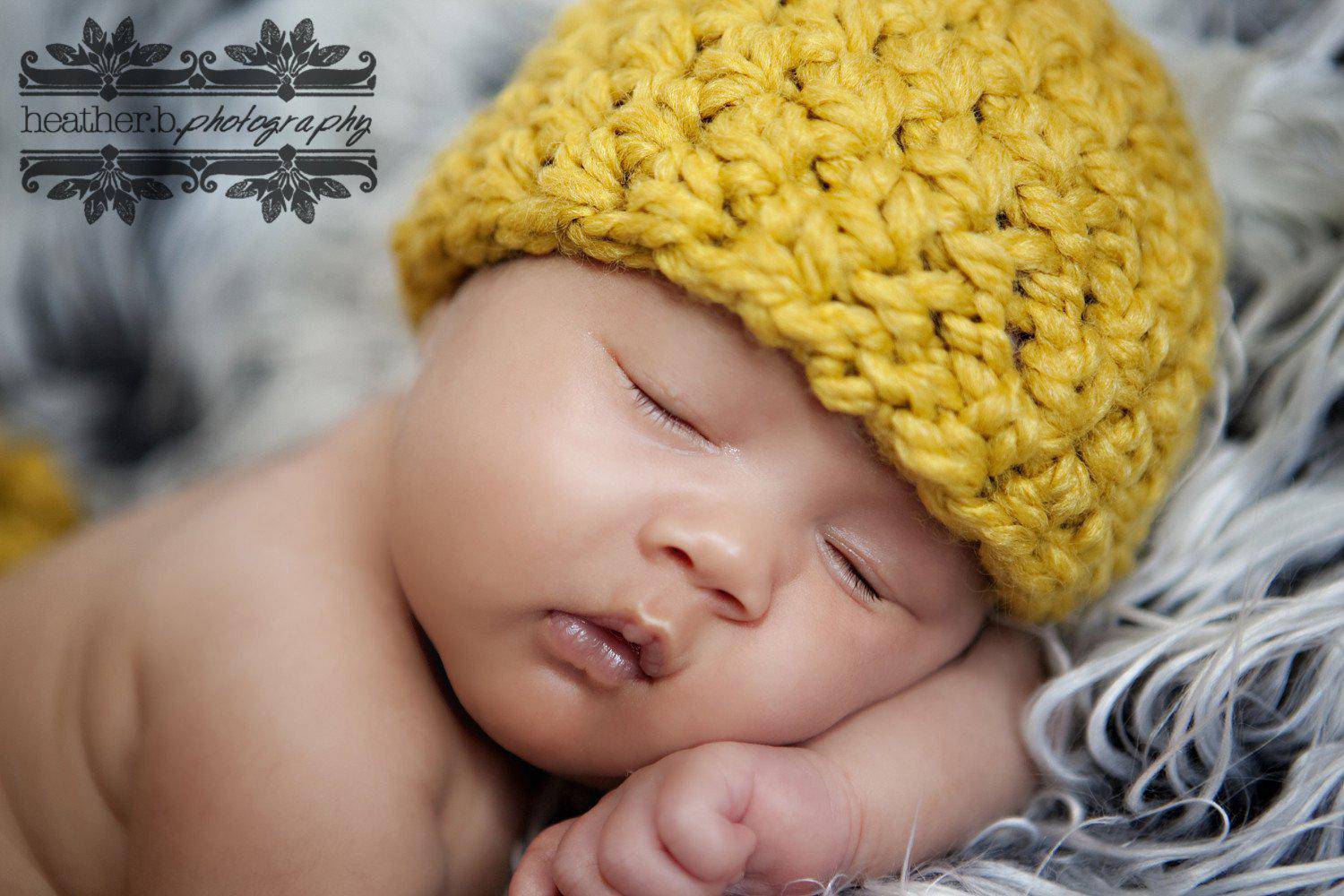 This gorgeous thick and chunky citron yellow newborn photography beanie