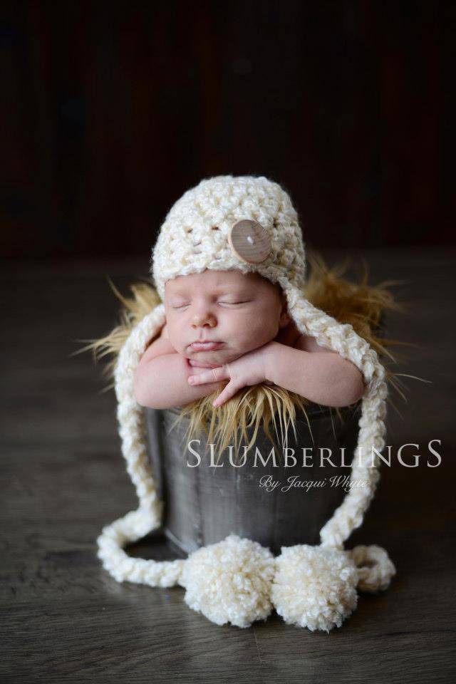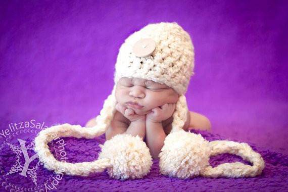 What do you get when you combine a super soft chunky hat, two fluffy hanging pom poms and a huge button? You get THE perfect hat for both little boys AND little girls! This cute little crocheted cream colored beanie hat with big pom poms is the perfect hat for those newborn photos! This is for the cream hat only.