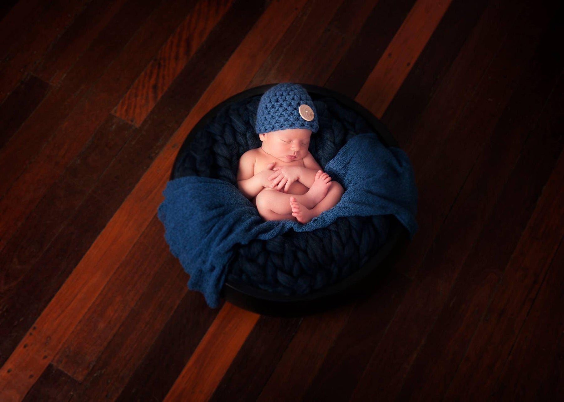 Denim Blue Newborn Button Hat
