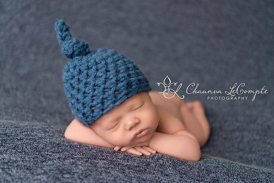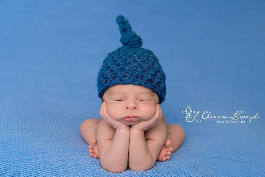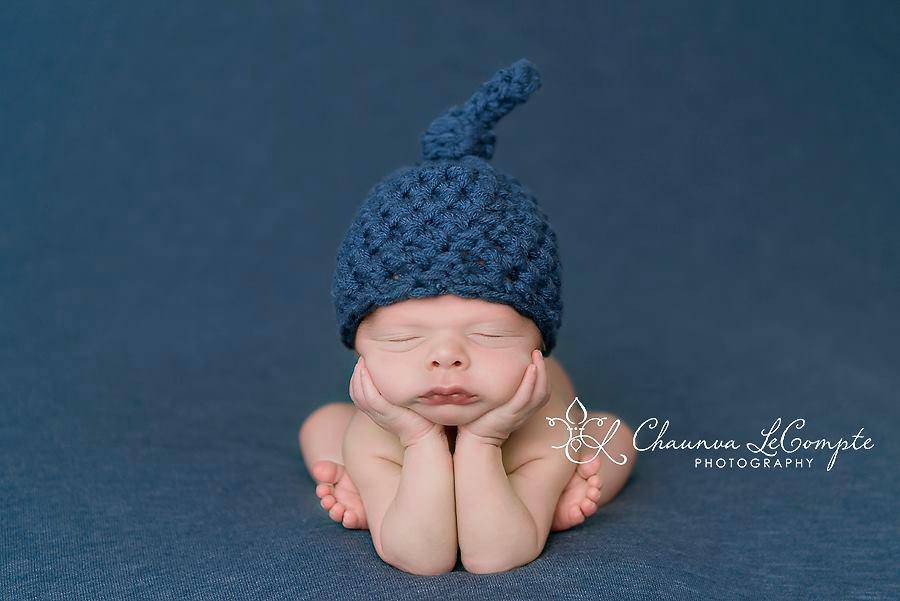 This gorgeous denim blue newborn knot beanie hat is made from a super soft acrylic yarn. It is the perfect fit to keep your little ones' noggin' nice and warm.