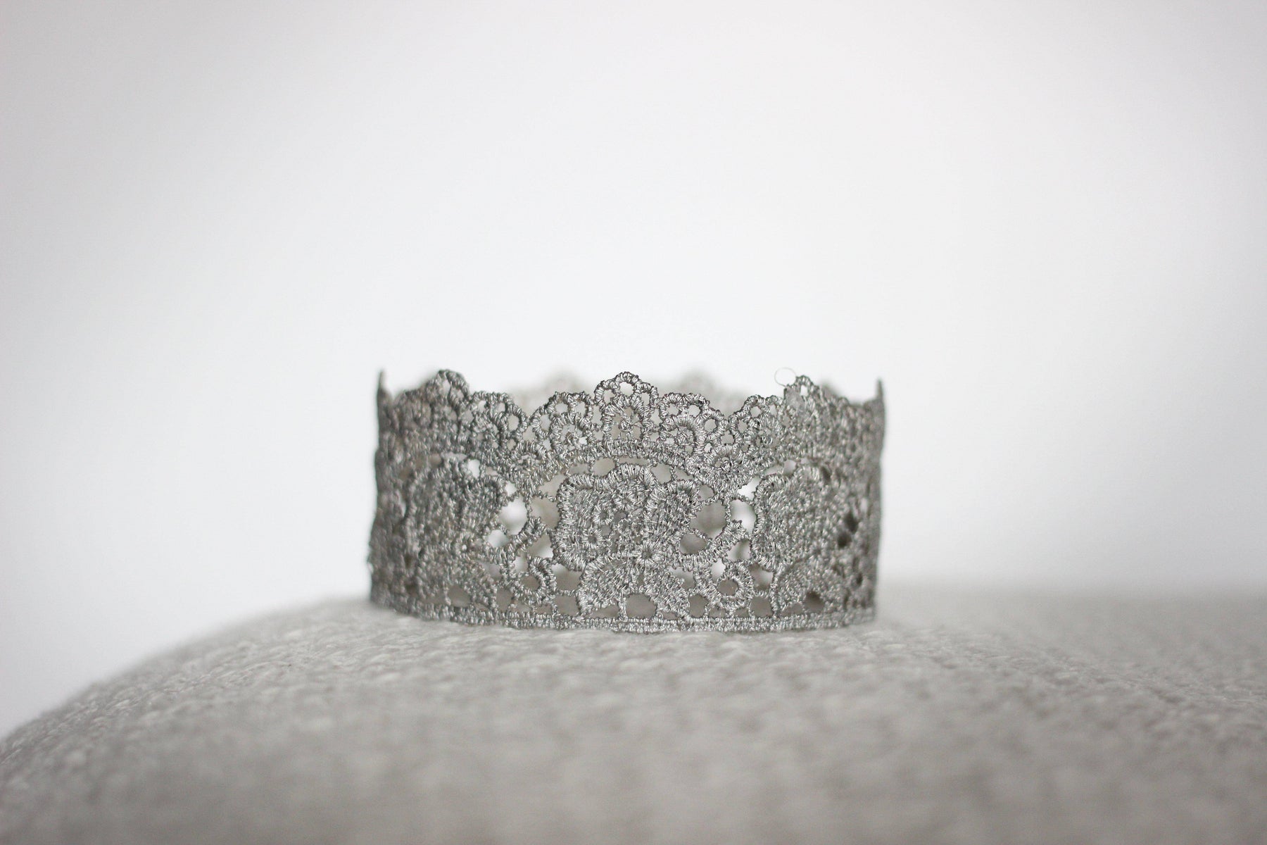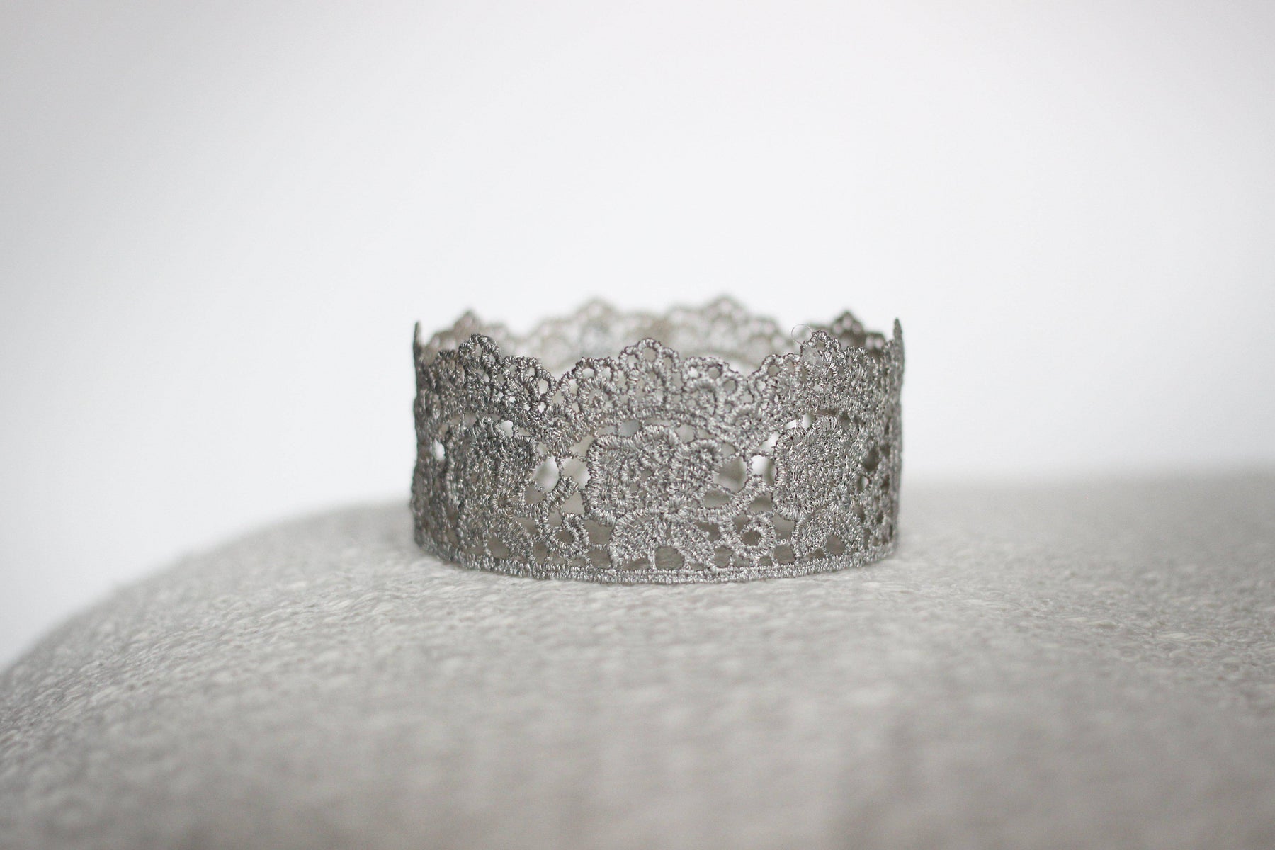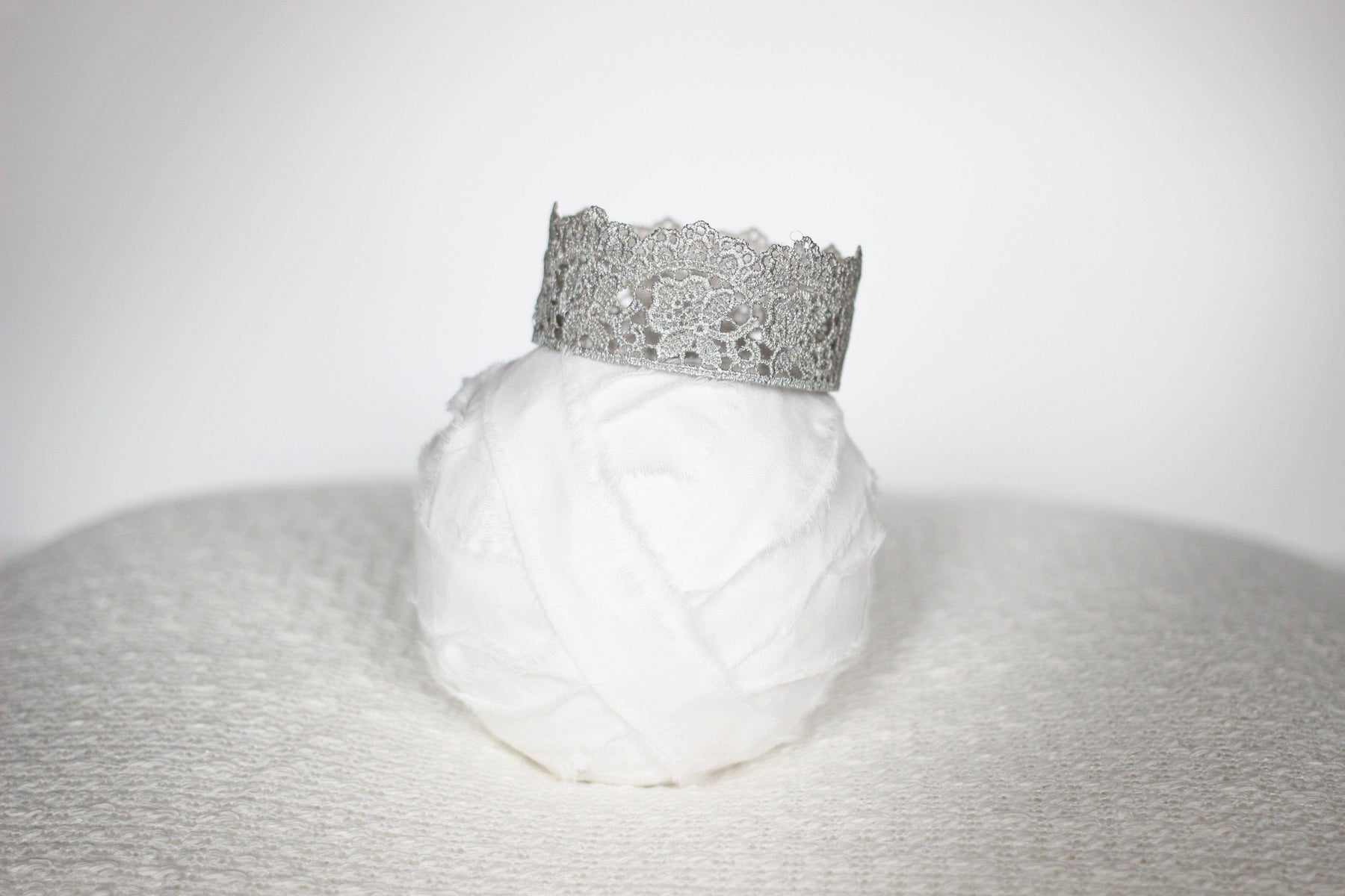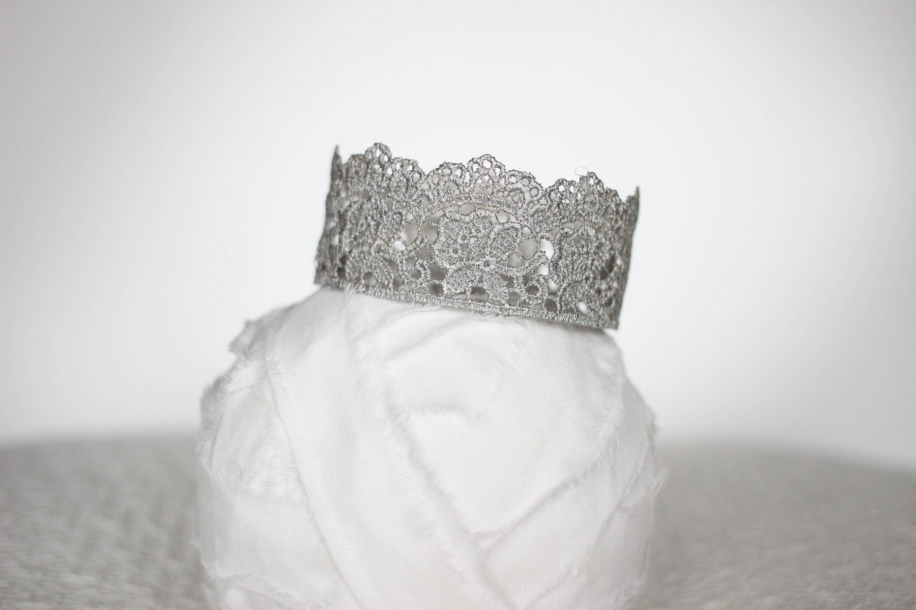From our Lace Crown Collection comes the beautiful Flora newborn baby crown! This adorable princess crown comes in silver and is delicate and semi-pliable. Gorgeous and dainty, this is the perfect prop for your newborn photos, as a cake topper for a baby shower or for your newborns first birthday, or as wearable party favors for your little princesses birthday party!