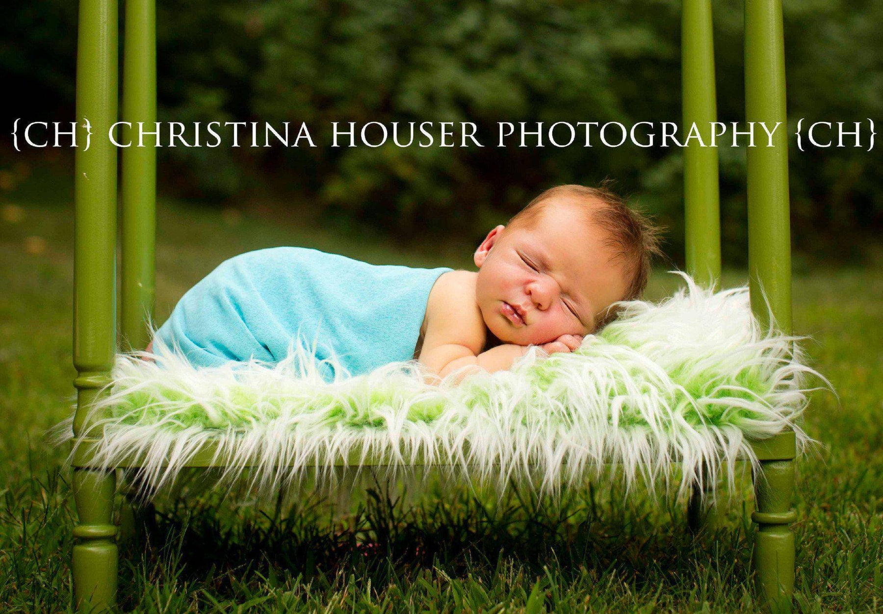 Long and luxurious! This beautiful frosted green mongolian faux fur nest is nice and thick (the nap is 3 inches high) and is the perfect touch for your newborn baby photography session! Fits perfectly in baskets, trench bowls or layed flat, the babies just snuggle right down into it!