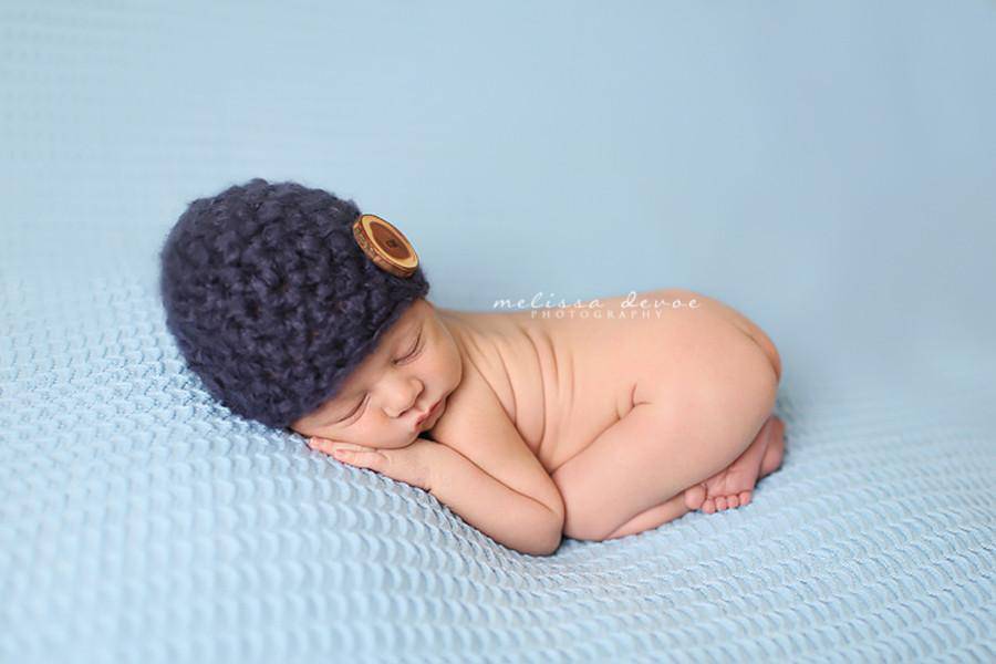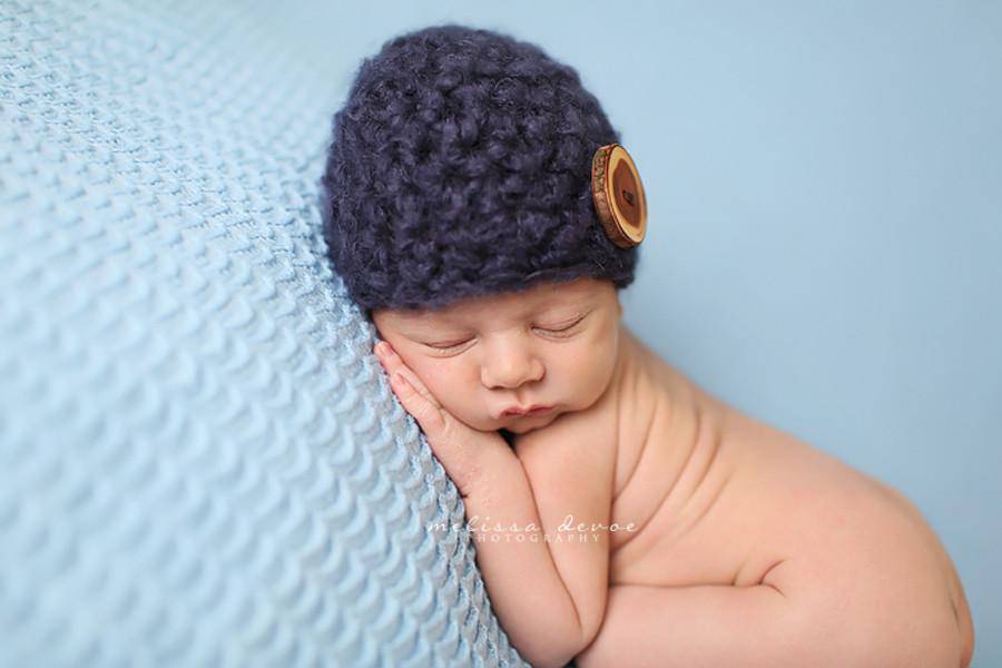 Fuzzy Blue Newborn Button Hat