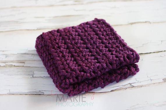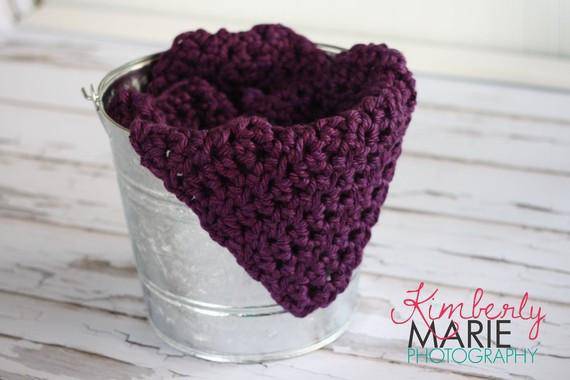 Chunky and fun! This gorgeous grape purple newborn baby blanket is made from a super cozy acrylic wool blend yarn that is nice and thick. The perfect size little blanket to throw in your bowls and baskets for that awesome pop of color and is great to add to your photo prop collection! It is 24 inches by 18 inches so it's THE perfect fit. The babies like to snuggle right down into it!