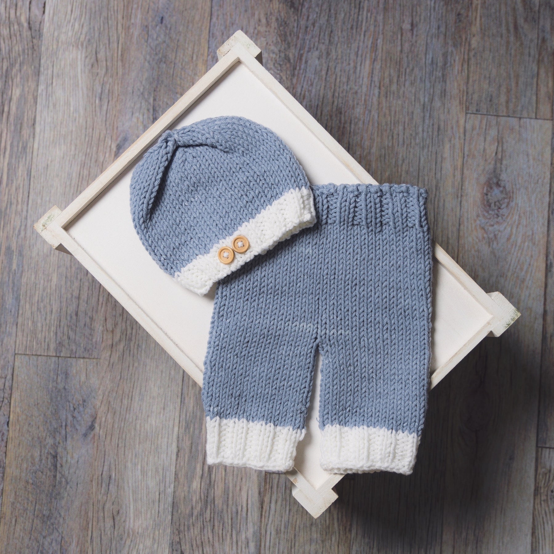 This adorable gray denim and white knit newborn hat and pants set is made from a super soft yarn and is just so sweet! Your little one will feel so warm and comfy wearing this super soft set, they are just perfect for professional photo shoots or everyday wear.