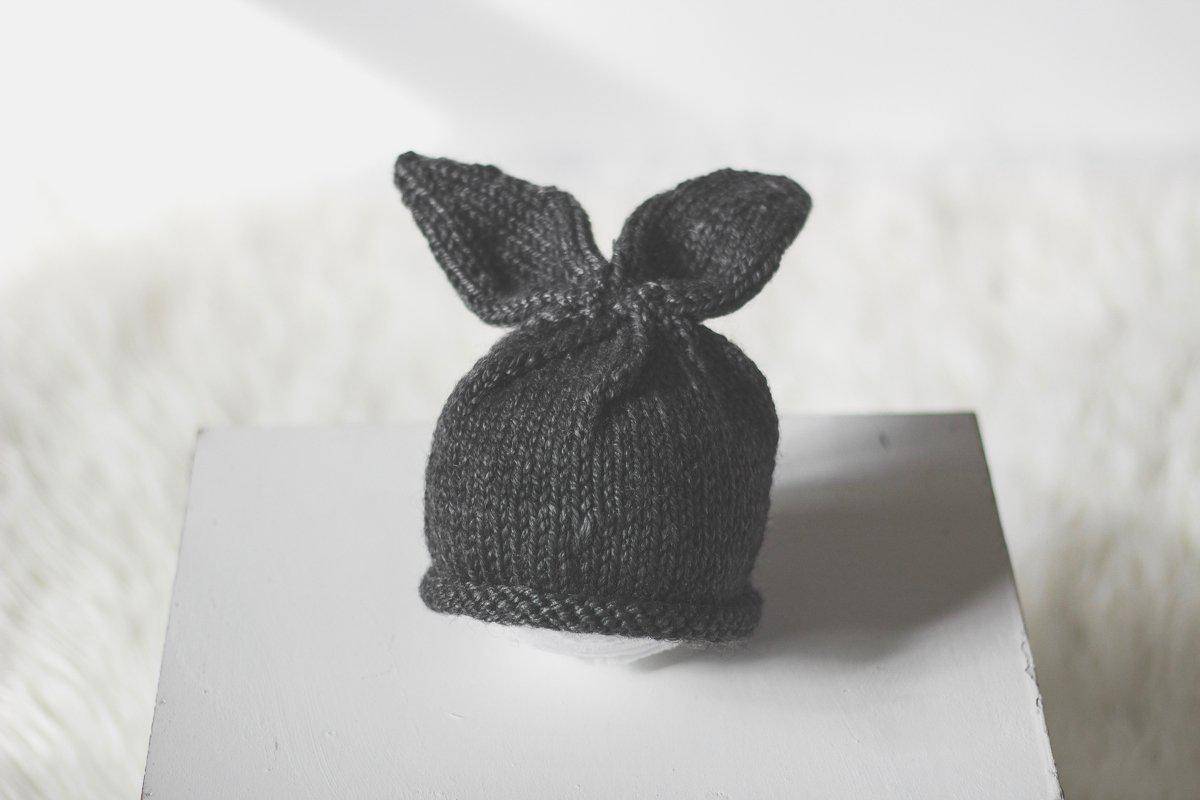 This adorable newborn knit bunny hat is made from a super soft acrylic blend yarn. It is the perfect hat for your newborn baby Easter photography shoot!