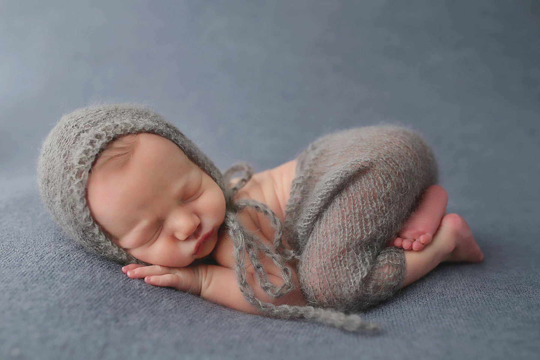 Gray Mohair Newborn Pants and Hat Set
