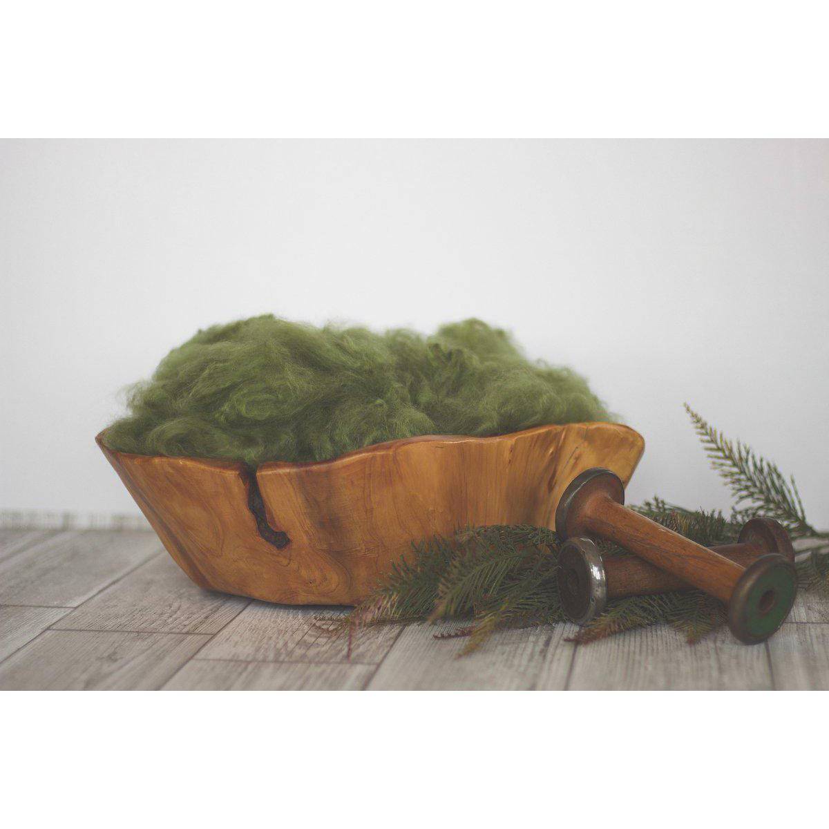 Our newborn photography fluff is carefully crafted by hand and perfect for using as basket stuffing or nest filler for newborn photography. This super soft loose wool blend can be pulled apart, fluffed and spread out to be arranged as you need it to get that perfect shot.