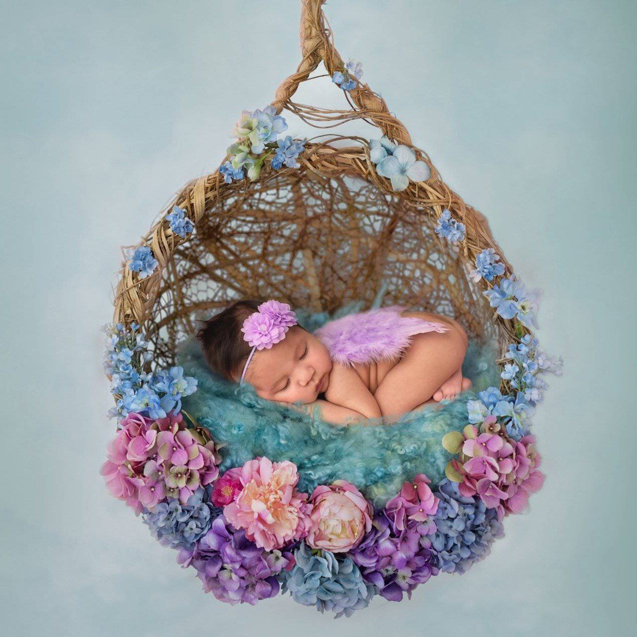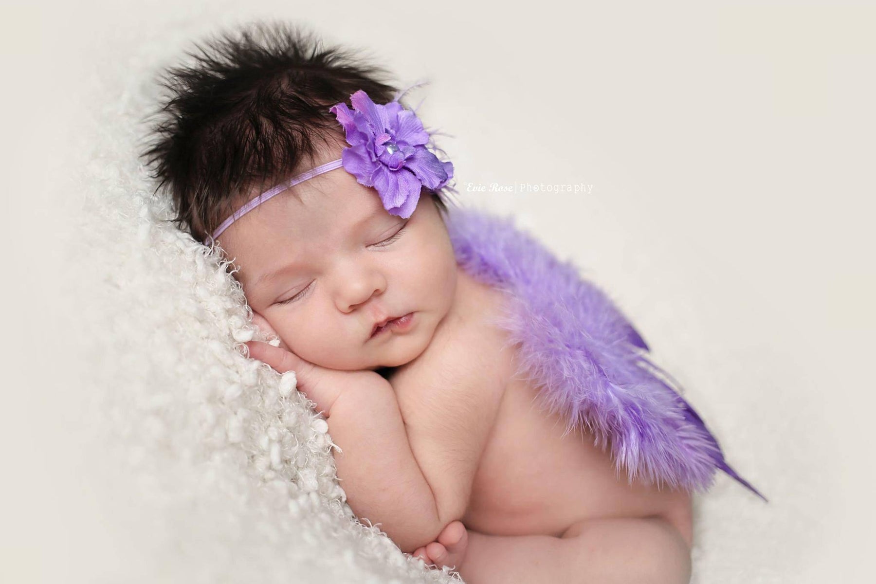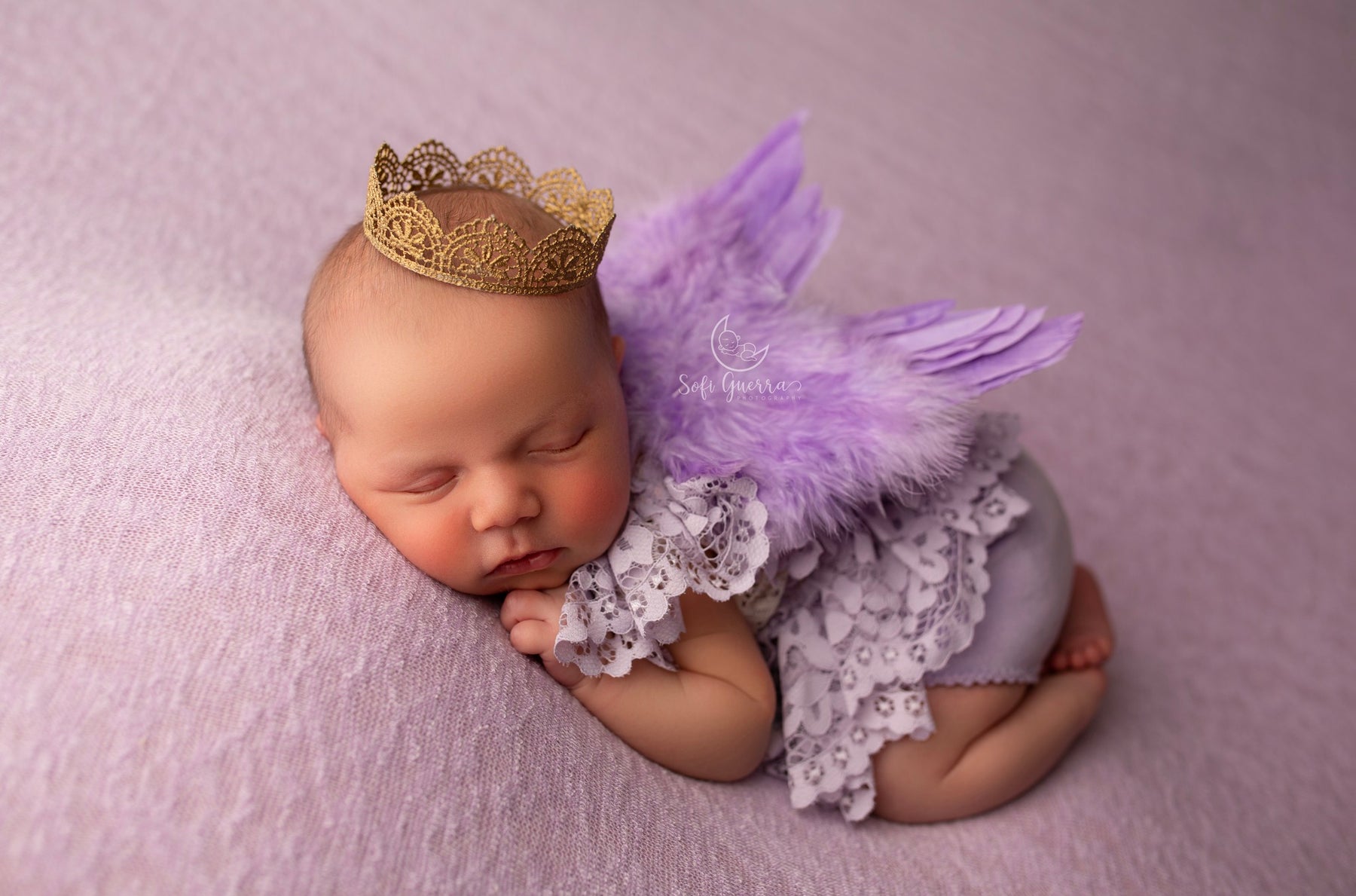 Our angel wings are perfect for infant and newborn photo sessions! They are also great used as costumes. Made of soft lavender purple feathers, they measure around 7.5 inches x 6 inches.