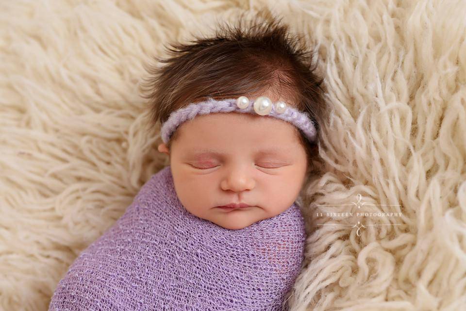 Made of soft mohair yarn and tiny matching pearls, this newborn headband is the perfect piece for your baby's first photos!  Fits Newborn to 6 months.