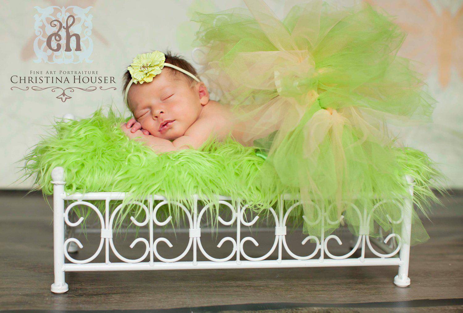 Long and luxurious! This beautiful lime green mongolian fur nest is nice and thick (the nap is 2-3 inches high) and is the perfect touch for your newborn baby photography session! Fits perfectly in baskets, trench bowls or layed flat, the babies just snuggle right down into it!