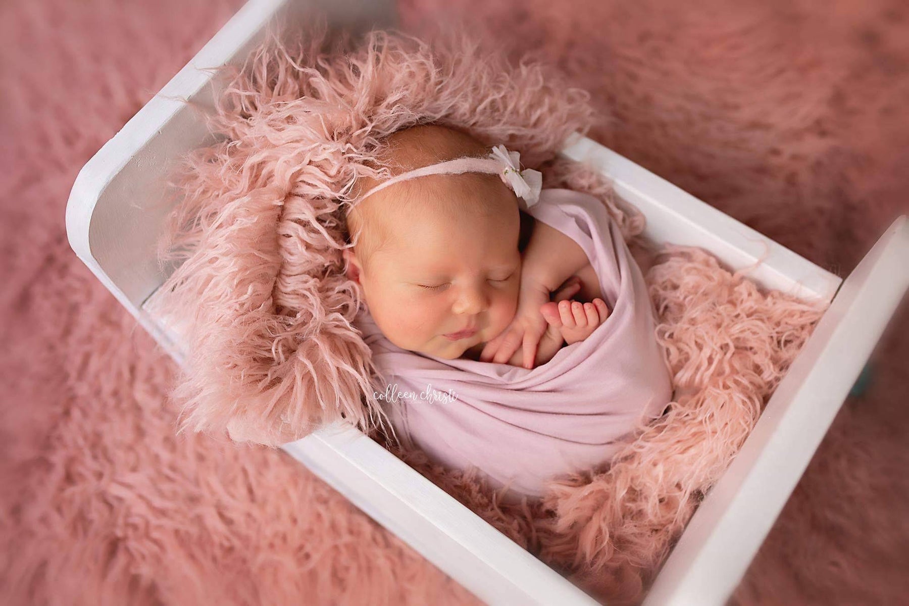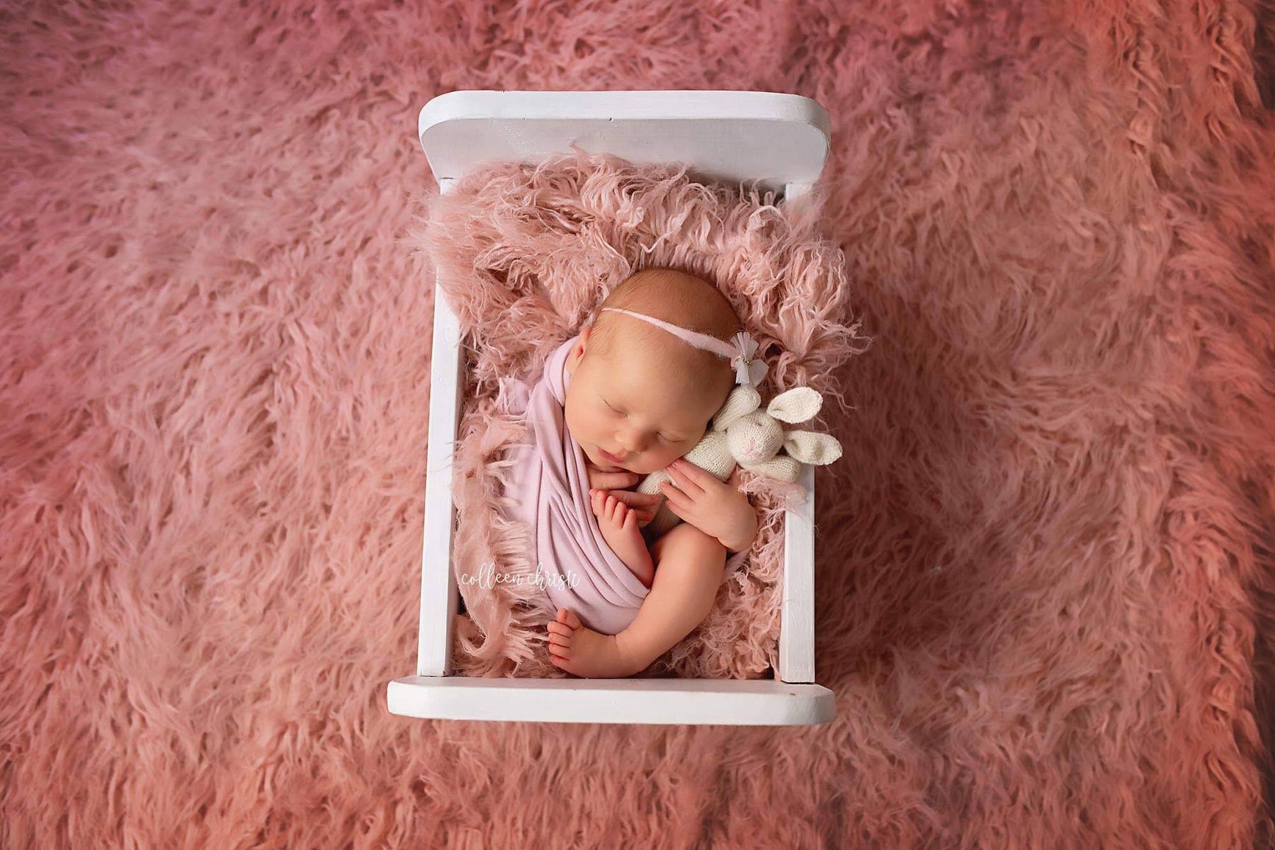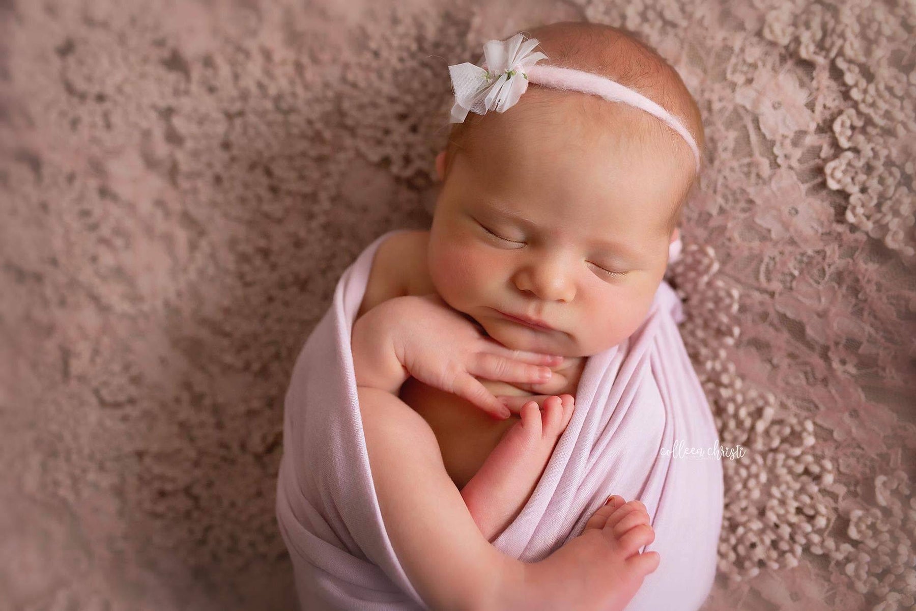 This adorable stretchy mauve wrap is easy to use and can be completely swaddled around newborn babies for the perfect first photo! It's generous length and width makes it the perfect prop, the edges are unfinished.