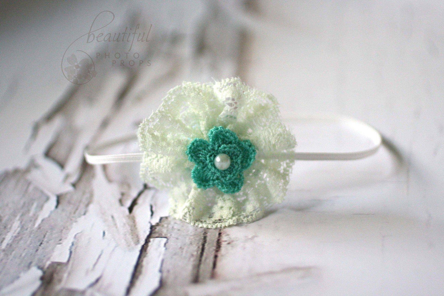 Mint and Green Lace Flower Headband