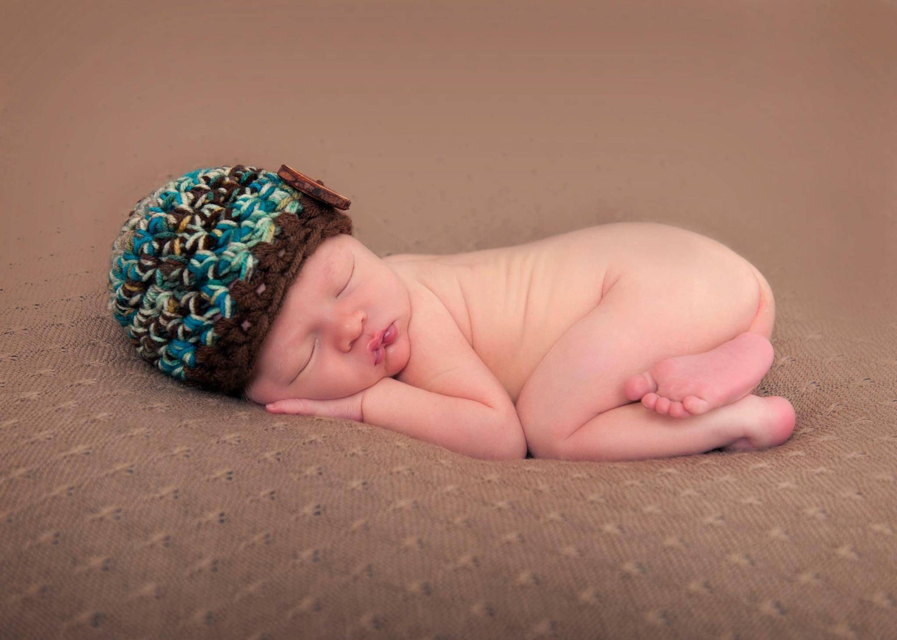 Newborn Button Hat Green Brown