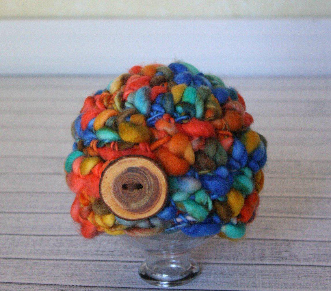 This adorable 100% pure handspun Merino wool beanie hat is made using a gorgeous mix of beige, purple, brown, emerald green and blue and is the perfect hat for those newborn photos! Your little one will just melt into this super soft hat, I love how the yarn goes from thick to thin to create a nice puffy design!
