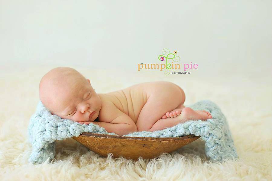 Super soft yet chunky! This gorgeous baby blue newborn mini baby blanket is made from a super cozy acrylic wool blend yarn with a soft furry yarn added for just the right touch. This is the perfect little blanket to add to your photo prop collection! It is 24 inches by 18 inches so it's THE perfect fit. The babies like to snuggle right down into it!