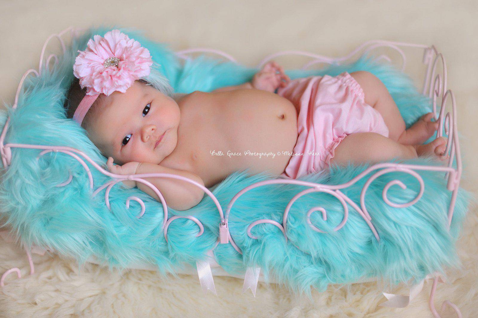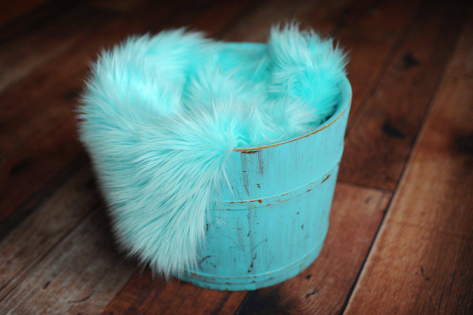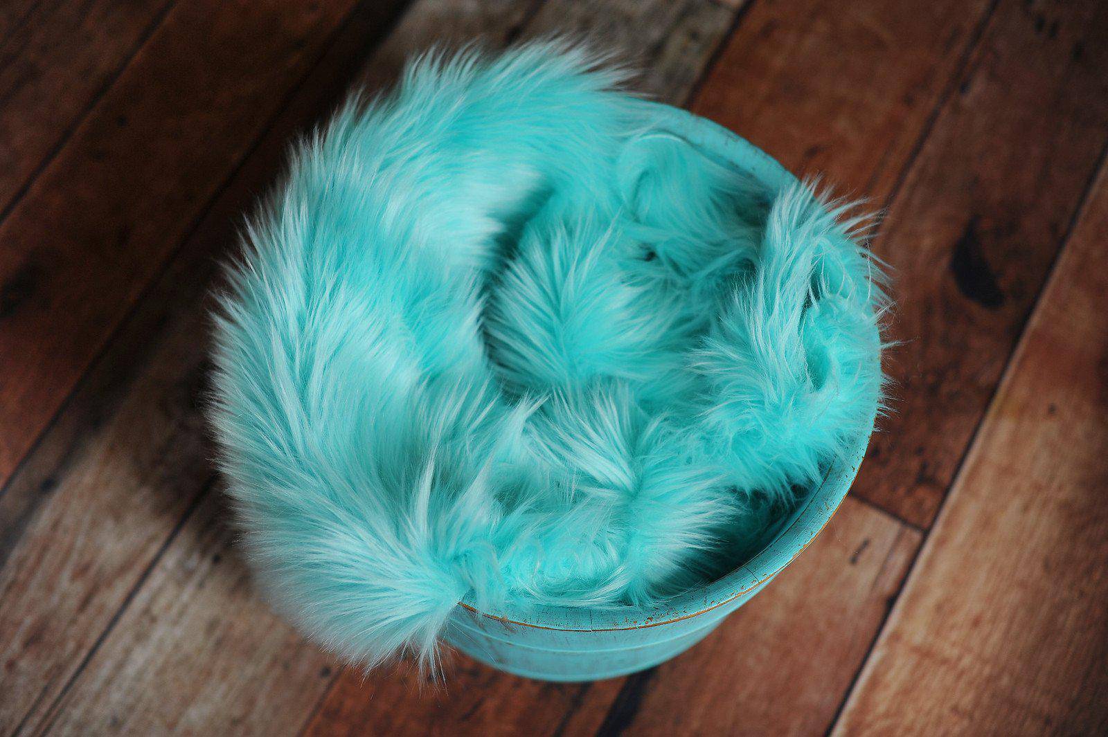 Long and luxurious! This beautiful ocean blue mongolian fur nest is nice and thick (the nap is 2-3 inches high) and is the perfect touch for your newborn baby photography session! Fits perfectly in baskets, trench bowls or layed flat, the babies just snuggle right down into it! Since I cut this fur by hand, the edges are not finished.