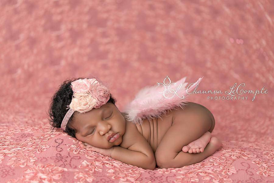 Our angel wings are perfect for infant and newborn photo sessions! They are also great used as costumes. Made of soft pink feathers, they measure around 7.5 inches x 6 inches. These are the same wings as the Soft Pink wings featured in our shop.