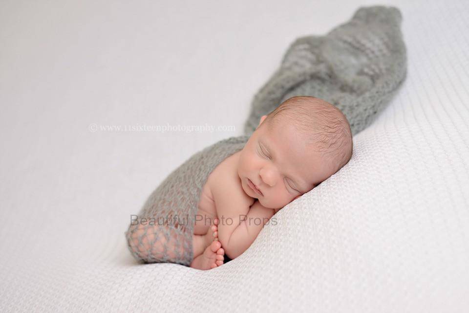These loosely knit, extremely stretchy and versatile mohair wraps are easy to use and can be completely swaddled around newborn babies for the perfect first photo! They measure approximately 16" x 31" unstretched.