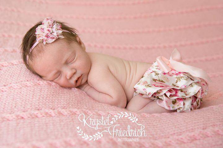 How adorable are these little lace ruffle bum covers? Made of stretchy satin fabric and row after row of yummy ruffles, these bloomers are just perfect for your newborn baby photos! Size small, fits newborn to 9 months.