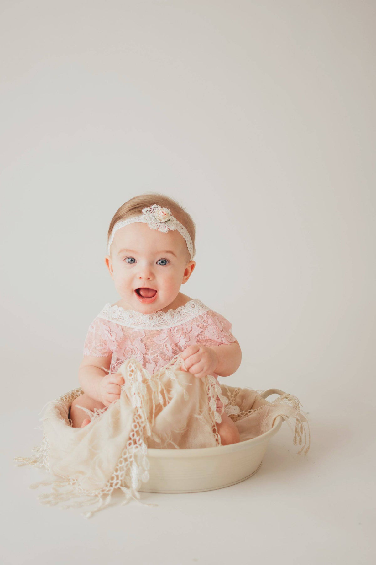 Pink Lace V-Back Newborn Romper with Ties - Beautiful Photo Props
