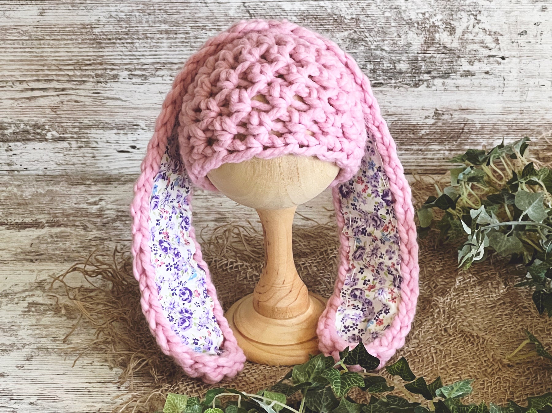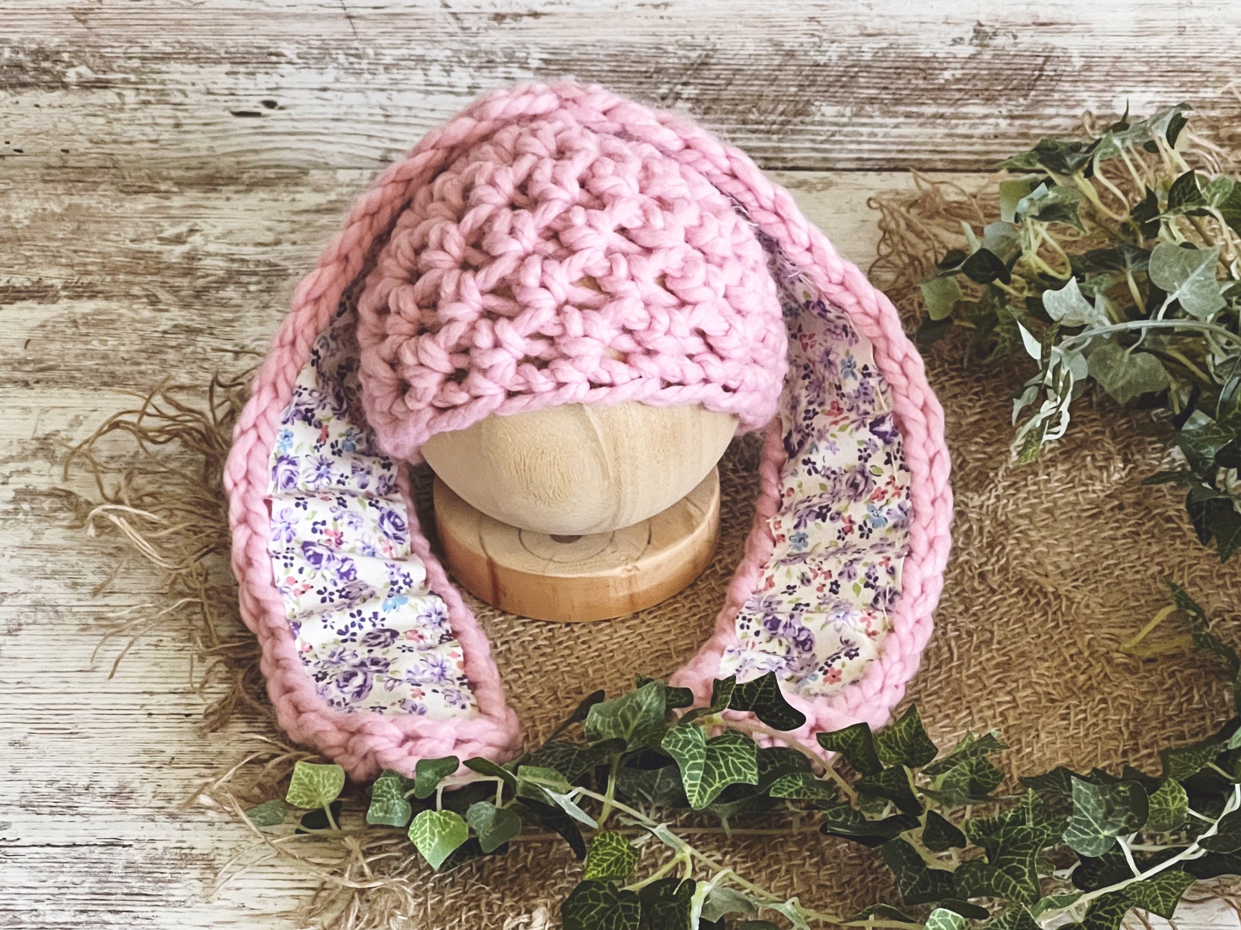 This adorable newborn Pink Long Ear Newborn Baby Bunny Hat is made from a super soft wool blend yarn. It is the perfect hat for your newborn baby Easter photography shoot!