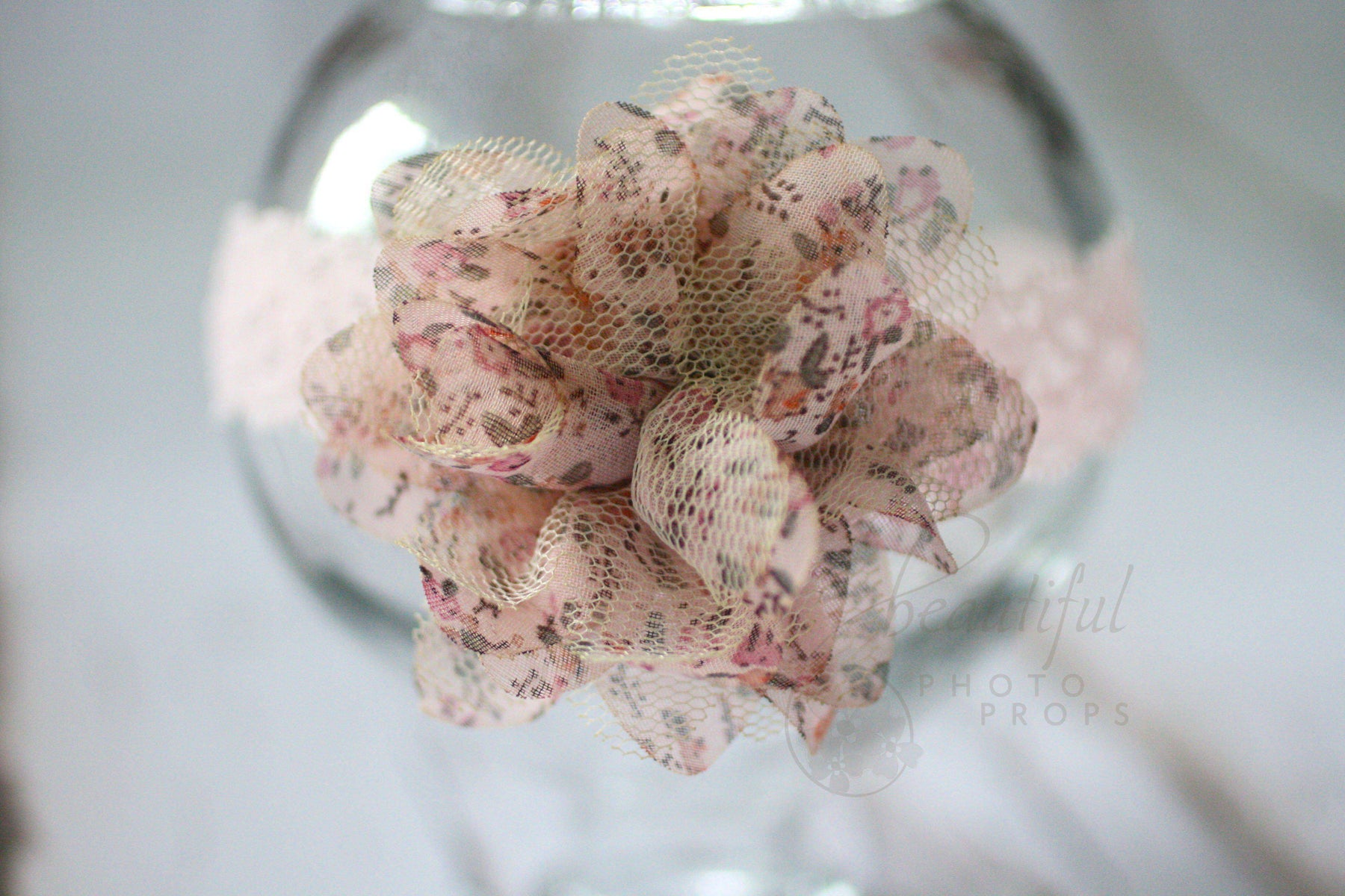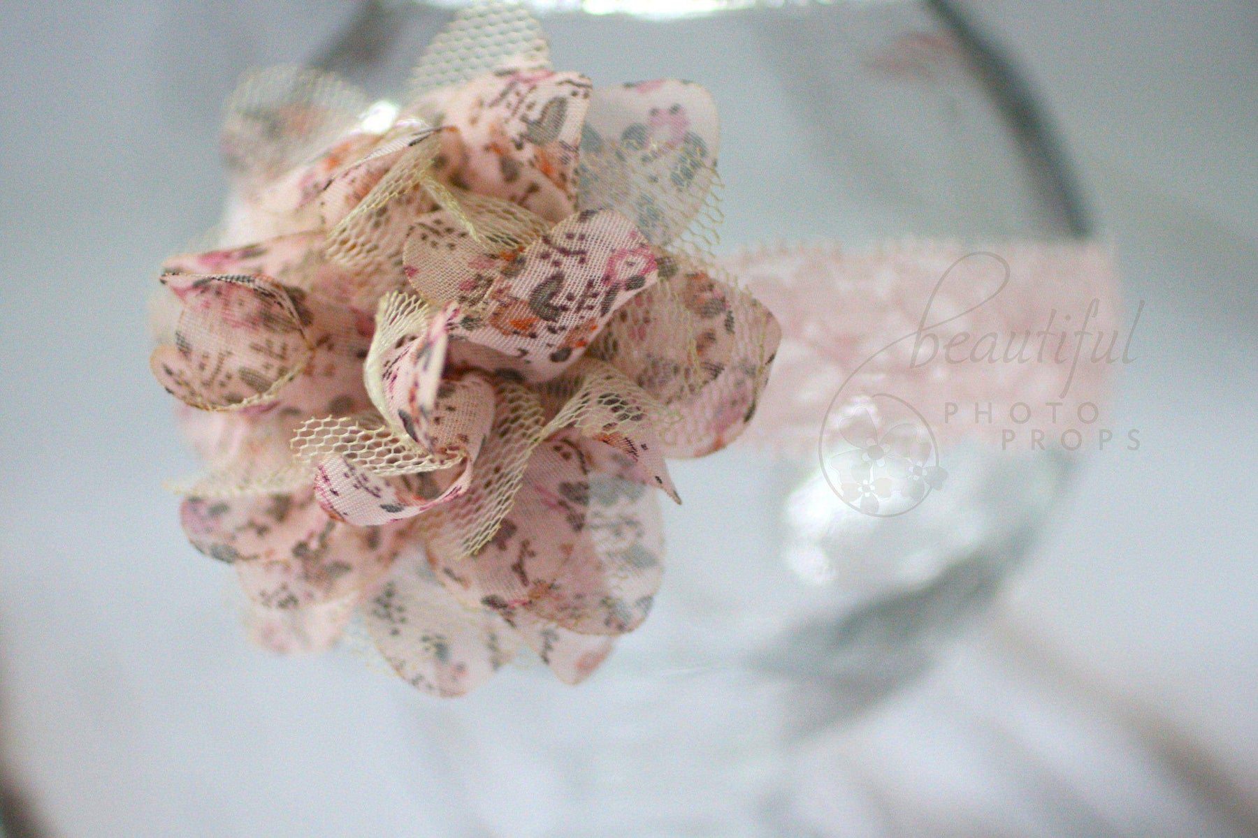 A photographer's dream! This sweet little pink and cream floral headband is so adorable and soft, it reminds me of being a kid again! The pink lace band paired with fabric and tulle petals is the perfect piece to wear at any age, from newborn to adult!