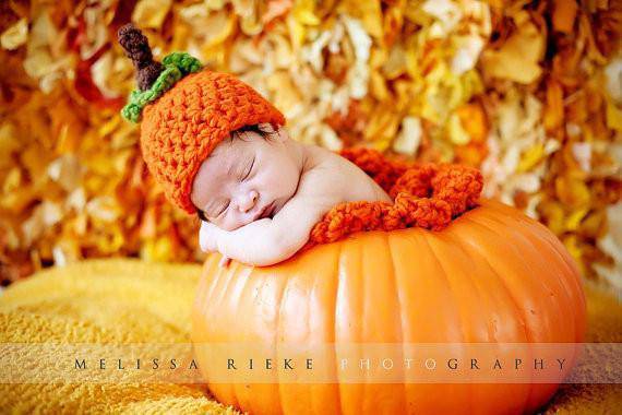 This gorgeous pumpkin orange newborn knot beanie hat is made from a super soft wool blend yarn. It is the perfect fit to keep your little ones noggin' nice and warm and is the perfect Halloween hat:)