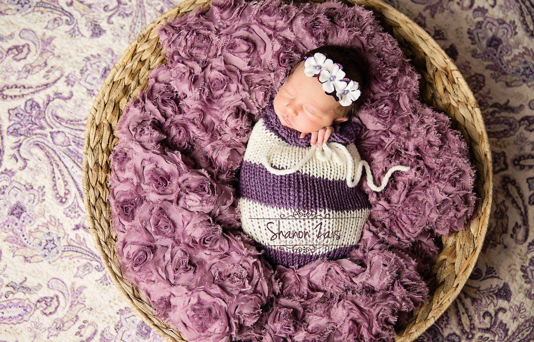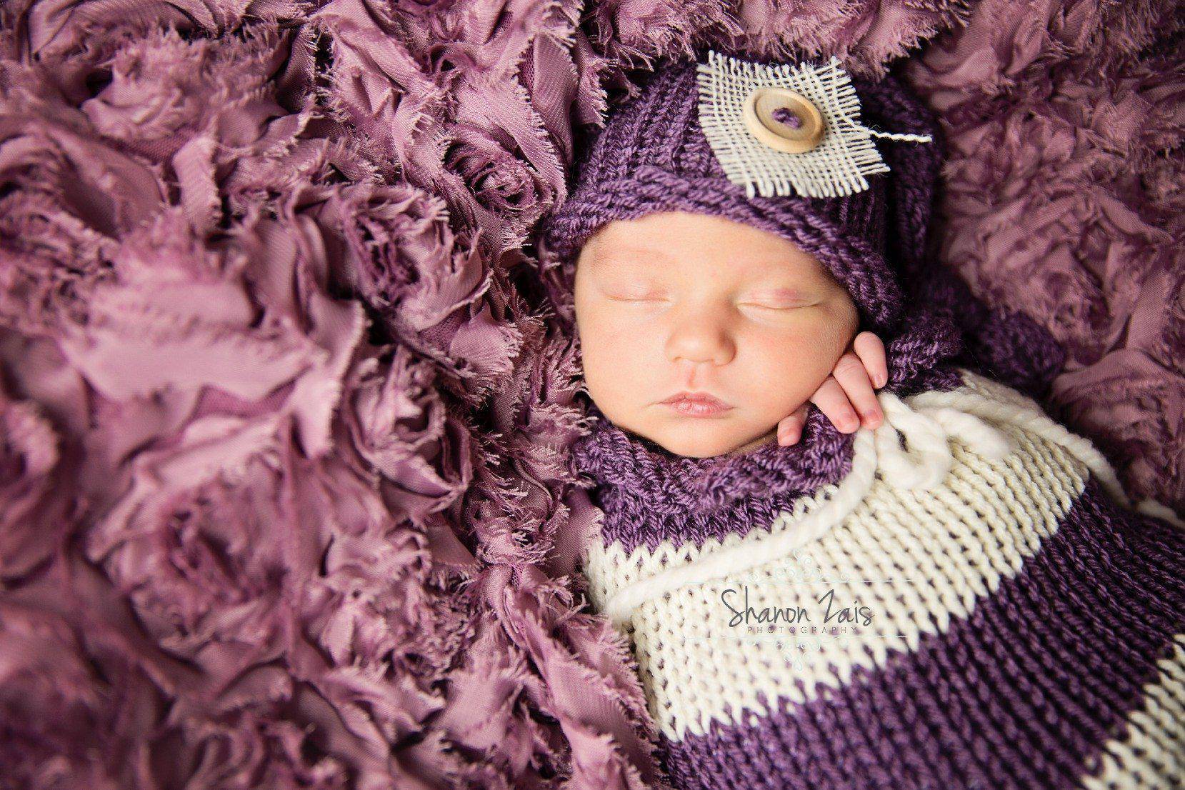 Purple Cream Newborn Knit Swaddle Sack - Beautiful Photo Props