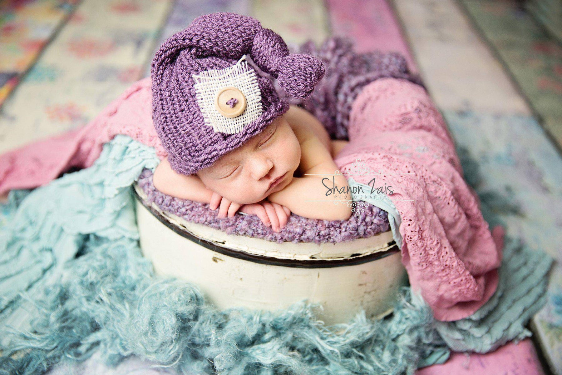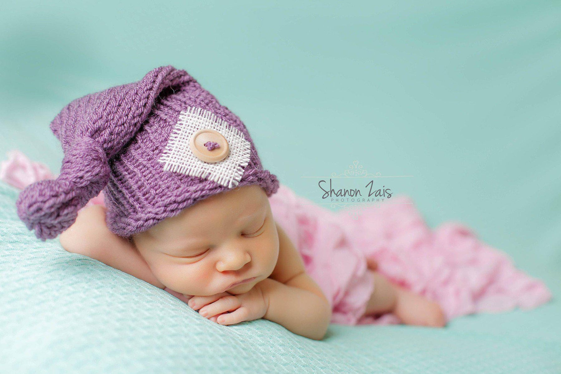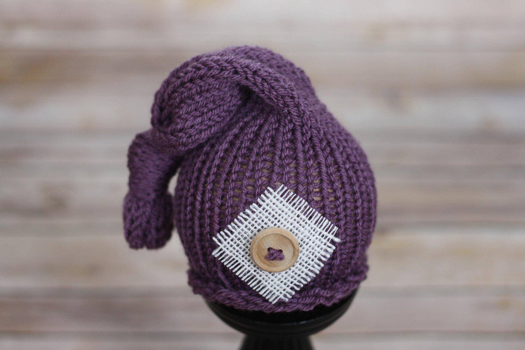 This gorgeous purple newborn pixie slouch hat is made from a super soft acrylic yarn and includes burlap and button embellishments. Your sweet little one will feel so warm and comfy wearing this super soft hat and this makes the perfect beanie for professional photo shoots.