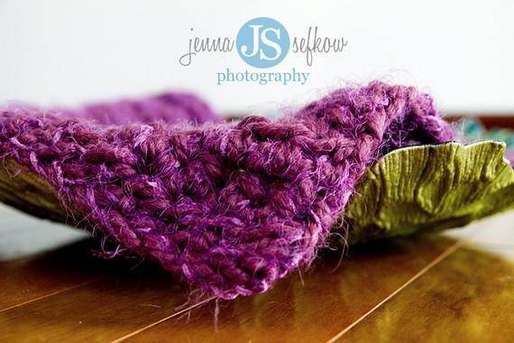 Super soft yet chunky! This gorgeous plum purple newborn mini baby blanket is made from a super cozy acrylic wool blend yarn with a soft furry yarn added for just the right touch. This is the perfect little blanket to add to your photo prop collection! It is 24 inches by 18 inches so it's THE perfect fit. The babies like to snuggle right down into it!