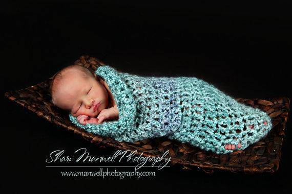 This gorgeous robin egg blue newborn photography cocoon prop is made from a super soft acrylic boucle yarn. I have crocheted it in a looser stitch so that babies little bits and pieces can poke through. This is for the cocoon only.