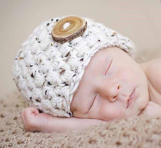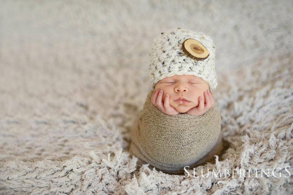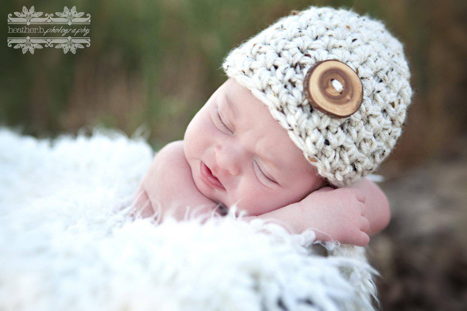 About the hat:  This gorgeous oatmeal beige newborn photography beanie hat prop is made from a super soft acrylic yarn with a real wood branch button embellishment. It is crocheted in the round and measures 12-13 inches with plenty of stretch. Your sweet little one will feel so warm and comfy wearing this super soft hat and this makes the perfect beanie for professional photo shoots.