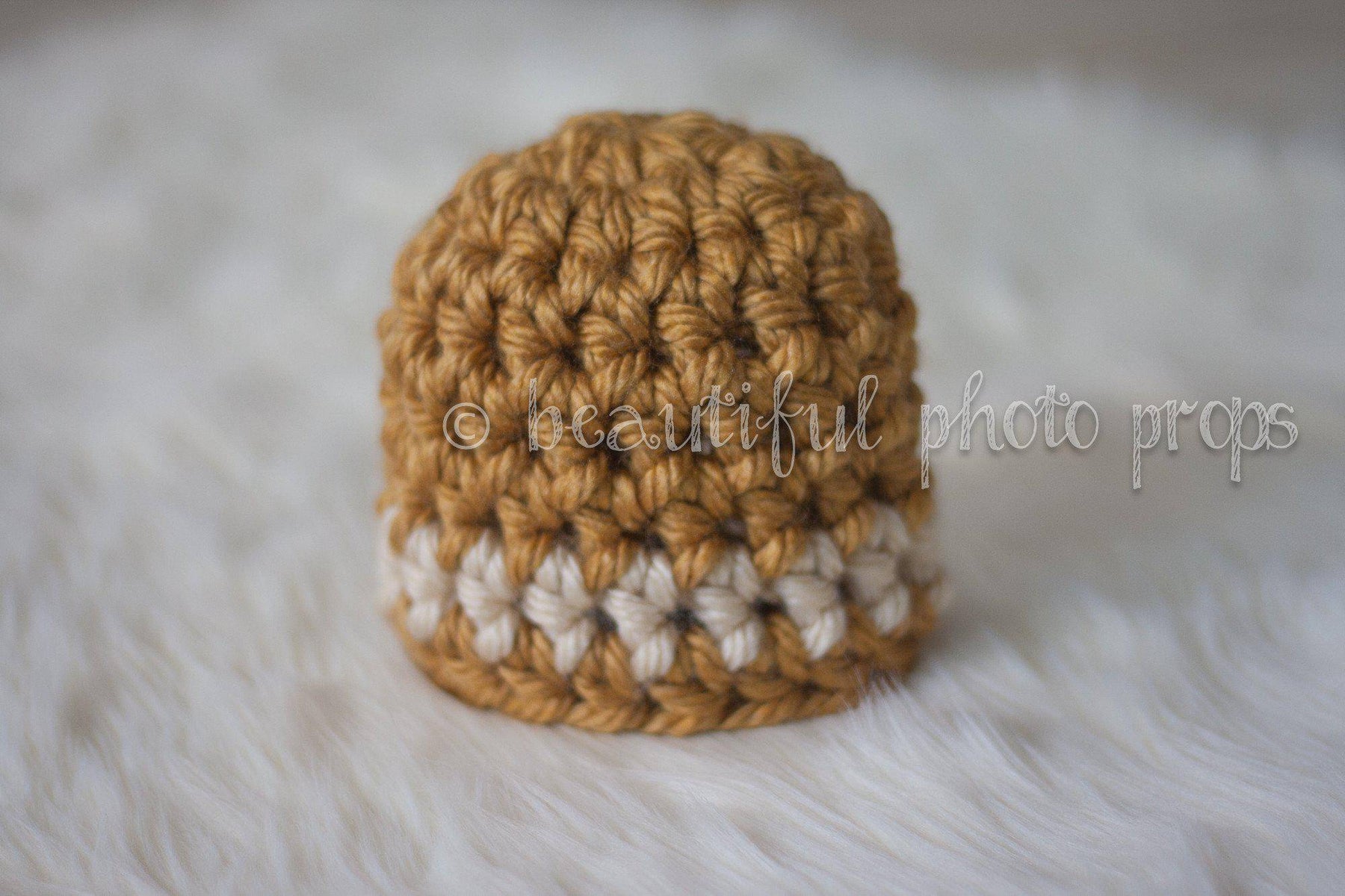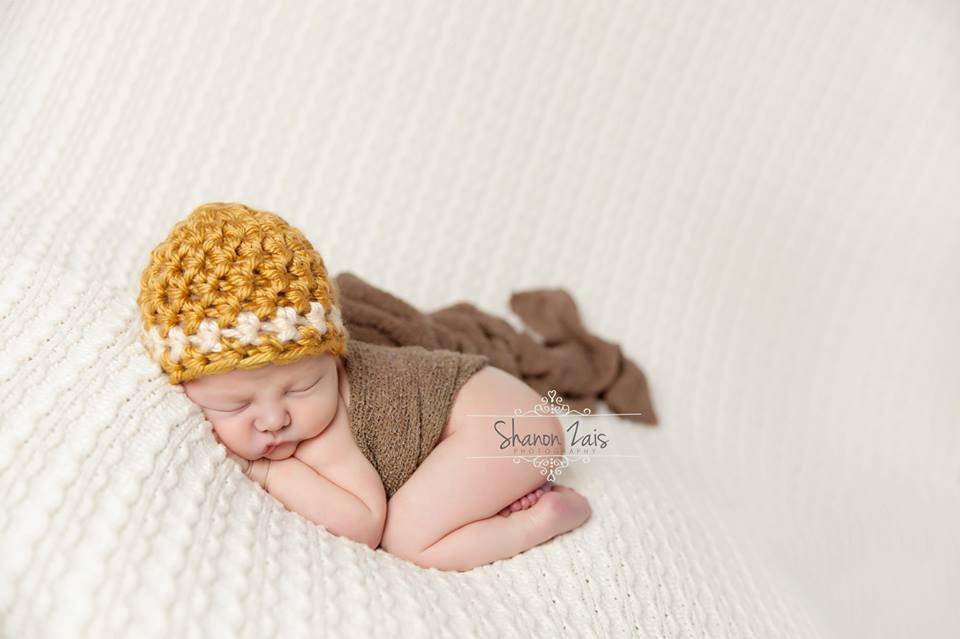 This gorgeous butternut and tan striped newborn hat is made from a super soft chunky yarn. It is crocheted in the round and measures 12-13 inches with plenty of stretch. Your sweet little one will feel so warm and comfy wearing this super soft hat and this makes the perfect beanie for professional photo shoots. Includes matching chocolate brown stretch knit wrap.