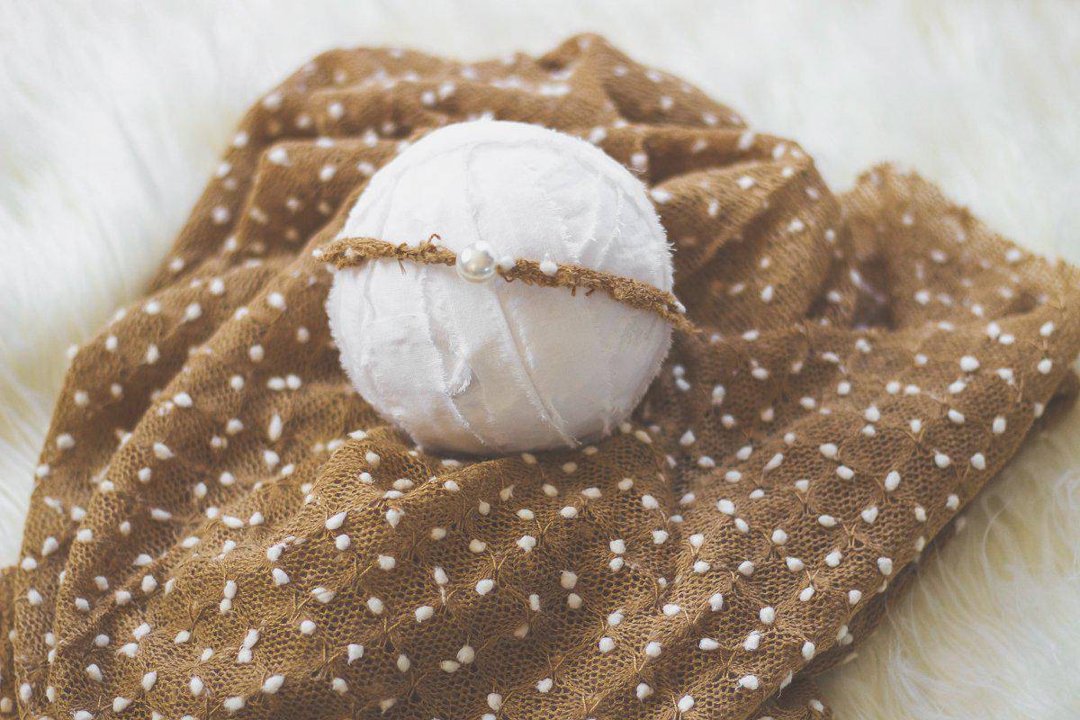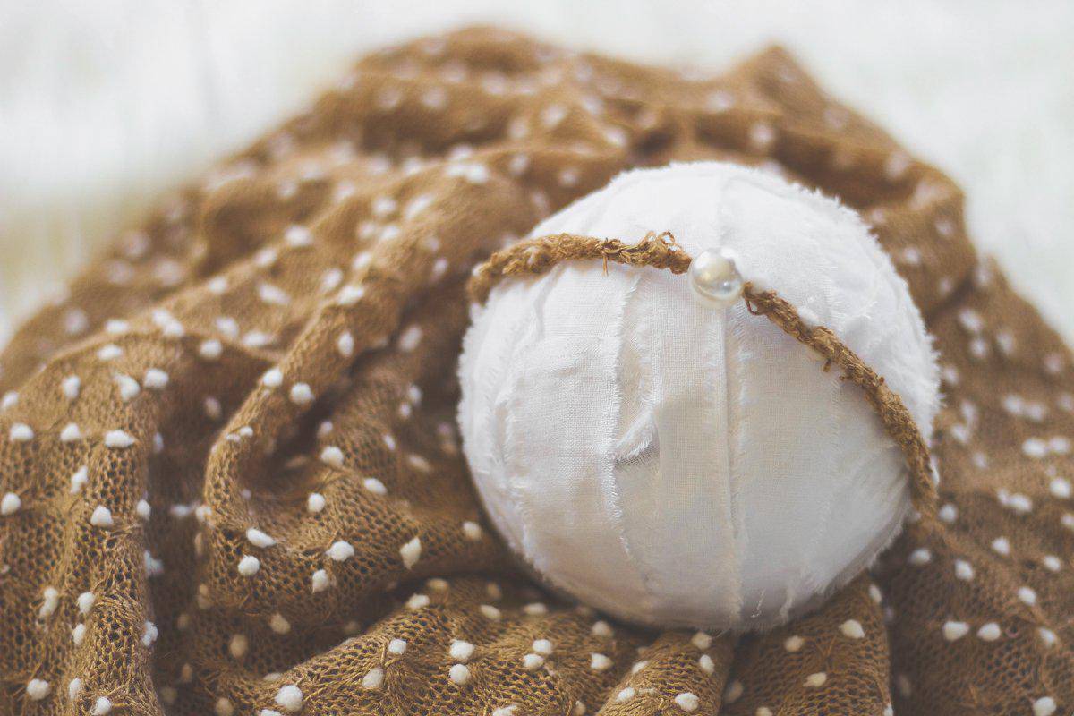 This mohair fabric popcorn wrap and headband set is easy to use and can be completely swaddled around newborn babies for the perfect first photo! They measure approximately 19" x 62" with lots of stretch. The headband features a pearl design and is the perfect touch for this adorable set!