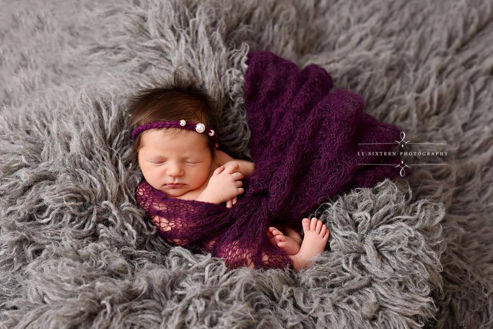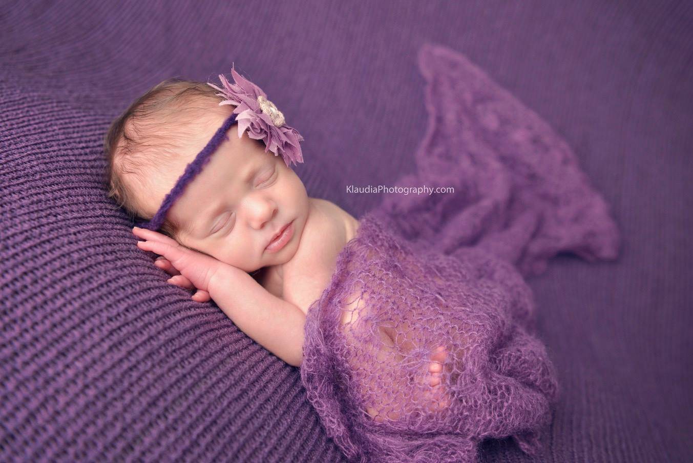 SET Eggplant and Purple Sunflower Mohair Knit Baby Wraps - Beautiful Photo Props